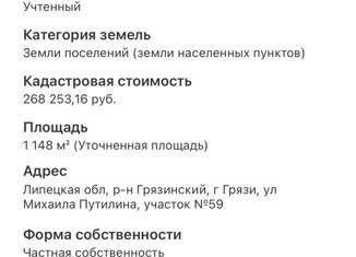 💲 Какая средняя цена продажи участка в Грязях, Липецкая область?