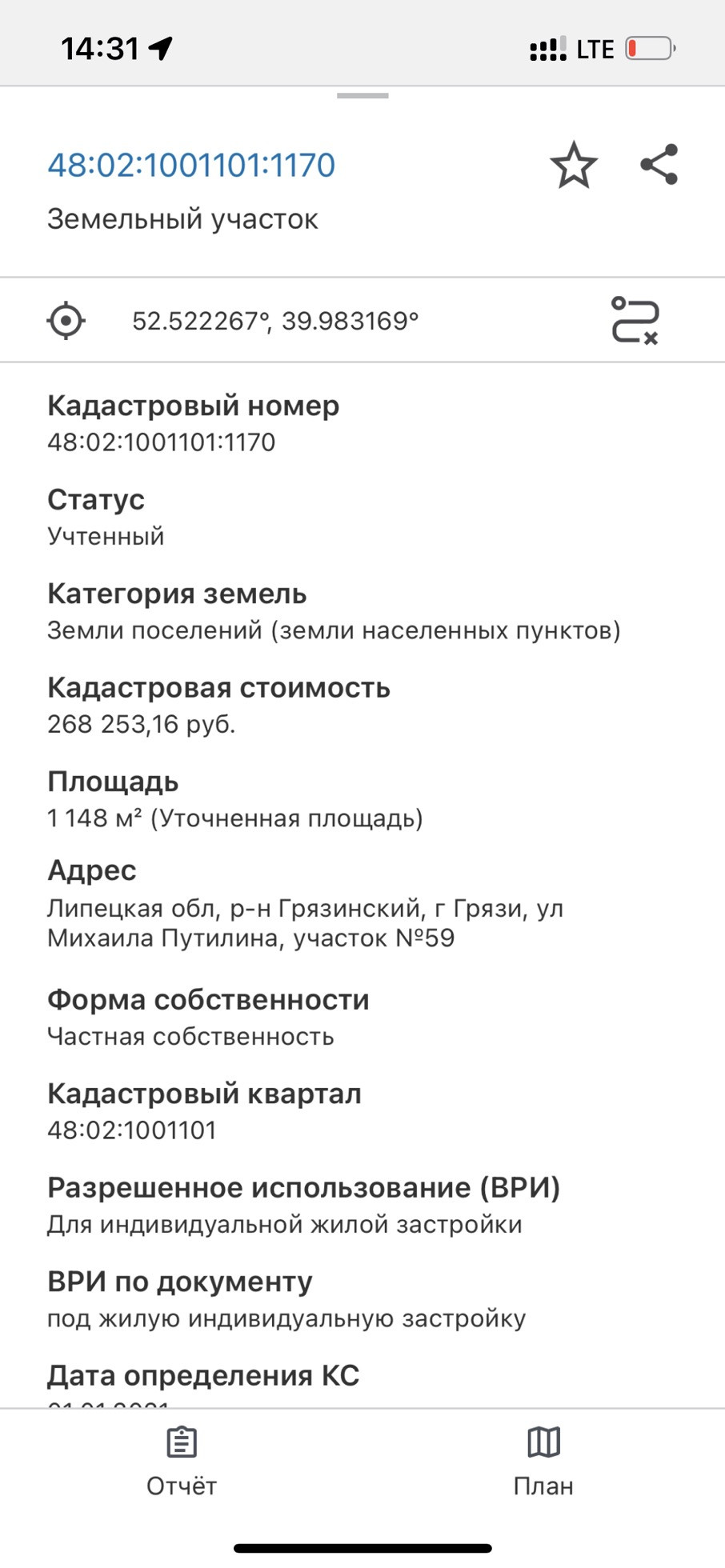 Участок под ИЖС, 11 сот. на продажу в Грязях, улица Михаила Путилина, 56