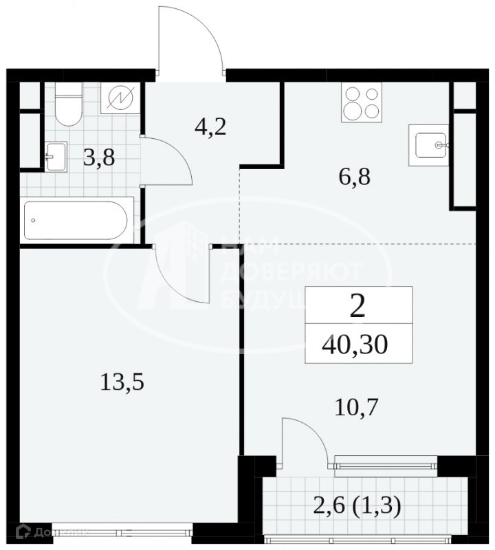 Общая площадь 40.3 м2