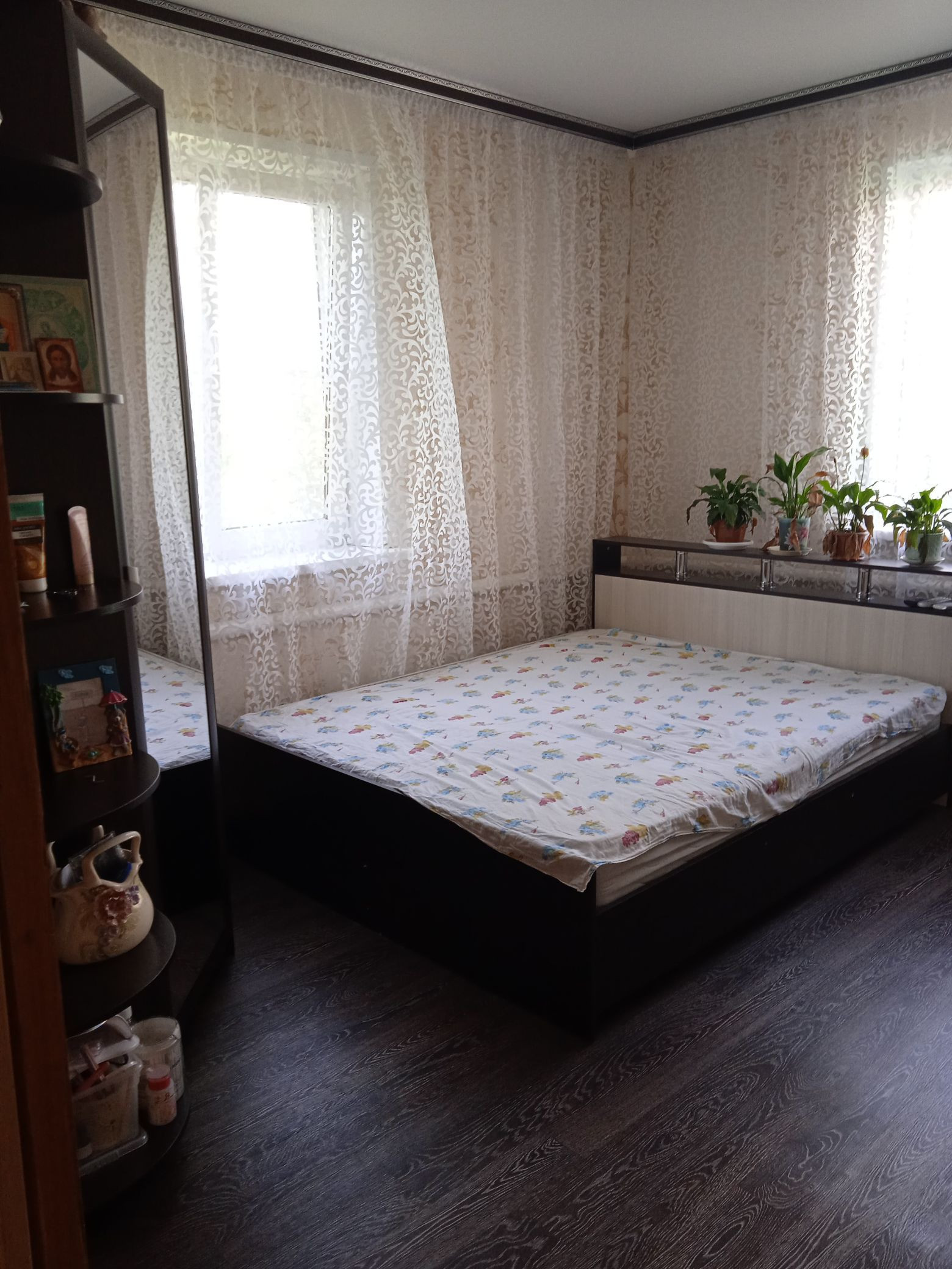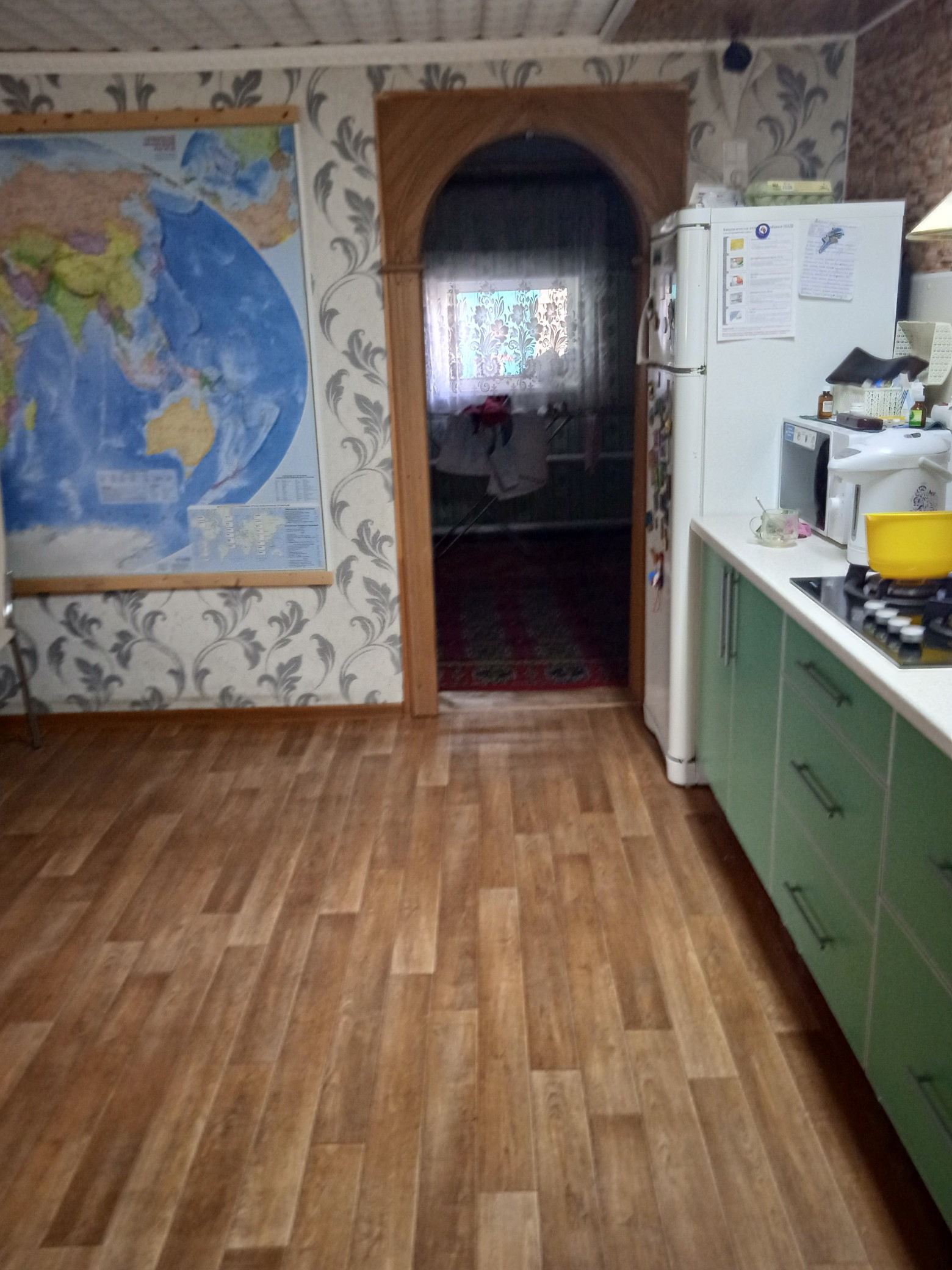 Продаём дом.Собственник.В доме сделан лёгкий косметический ремонт,есть газ,вода,свет,ванна и туалет,домашний телефон и интернет, 4 комнаты,кухня 30 кв.м.,большой и просторный коридор, 2 гаража,погреб, сад и огород. Или обмен на две двухкомнатные квартиры.