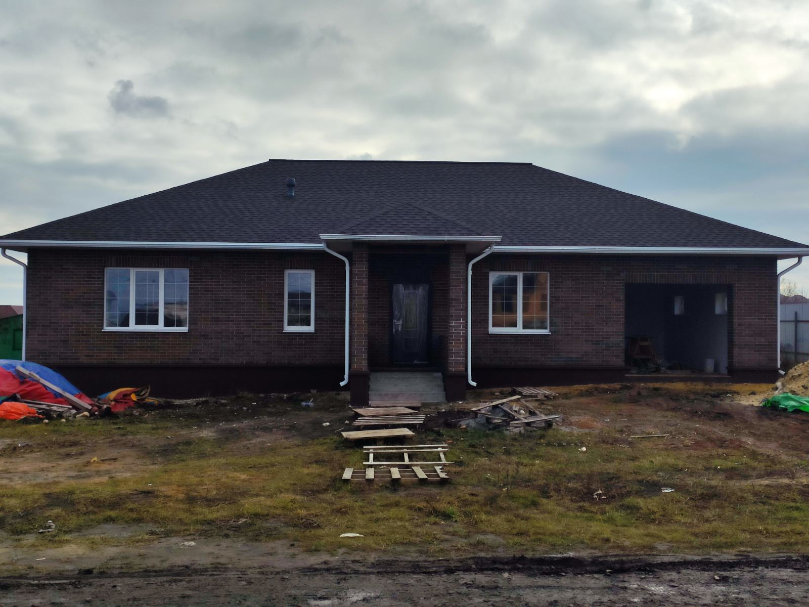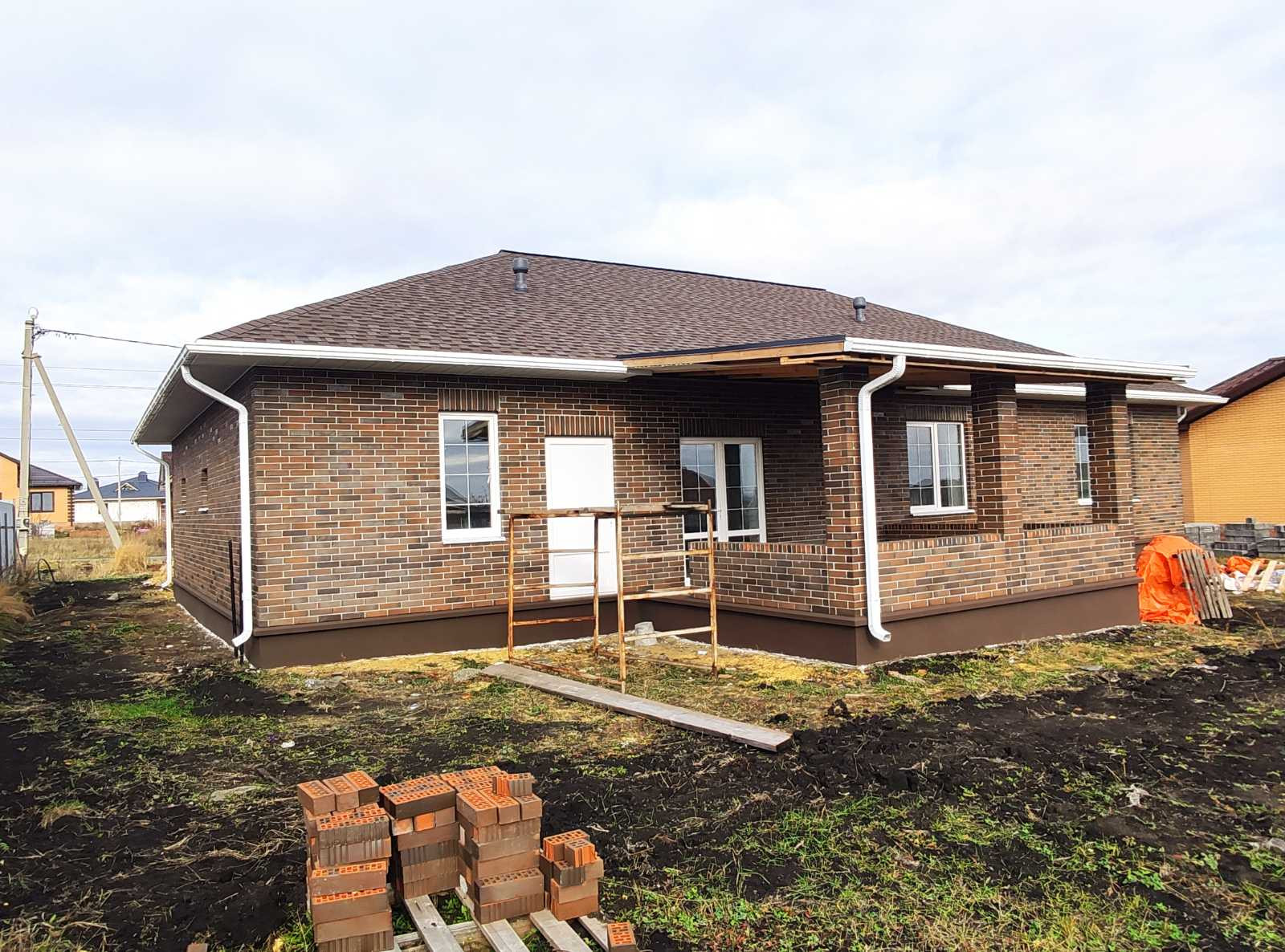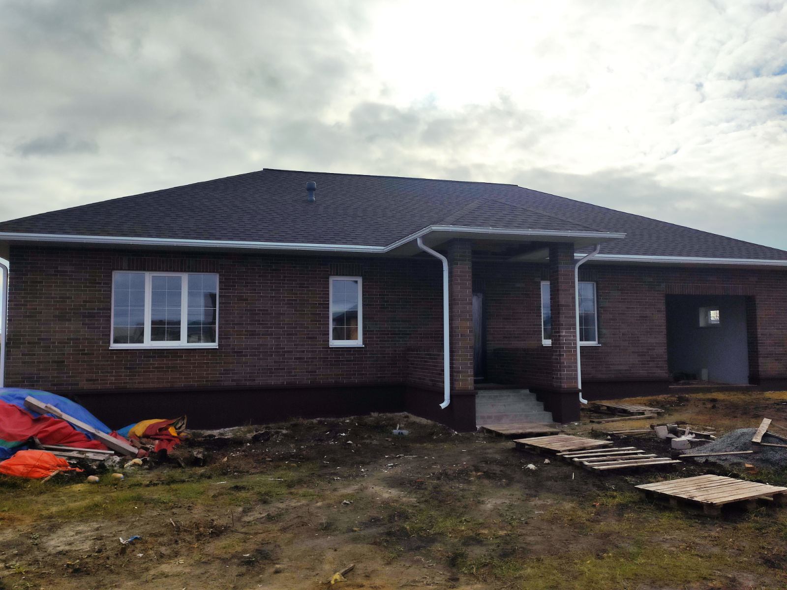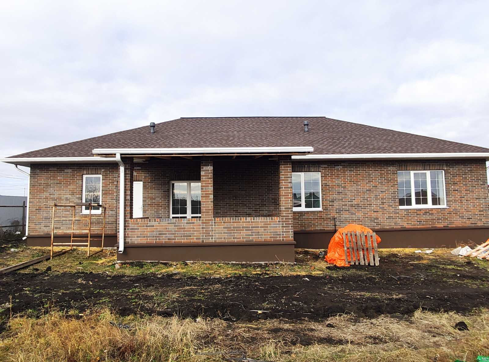 Продается новый дом ул. Лесная, Общая площадь 119 м.кв., участок 15 соток. Свет, газ, вода проведены. Кирпич Тульский BRAER, облицовка. Стены, наружный периметр, облицовка + блок 400 мм. Внутренние перегородки блок 200 мм. Высота потолка 3 м. Окна фирмы VEKA, 70 профиль, 3 стекла с посеребрением. Крыша, гибкая черепица SHINGLAS Джаз, Сицилия. Проведена электропроводка, отопление. Стены оштукатурены, шпаклевка. На полу чистовая стяжка. Большая терраса, крыльцо с навесом.
