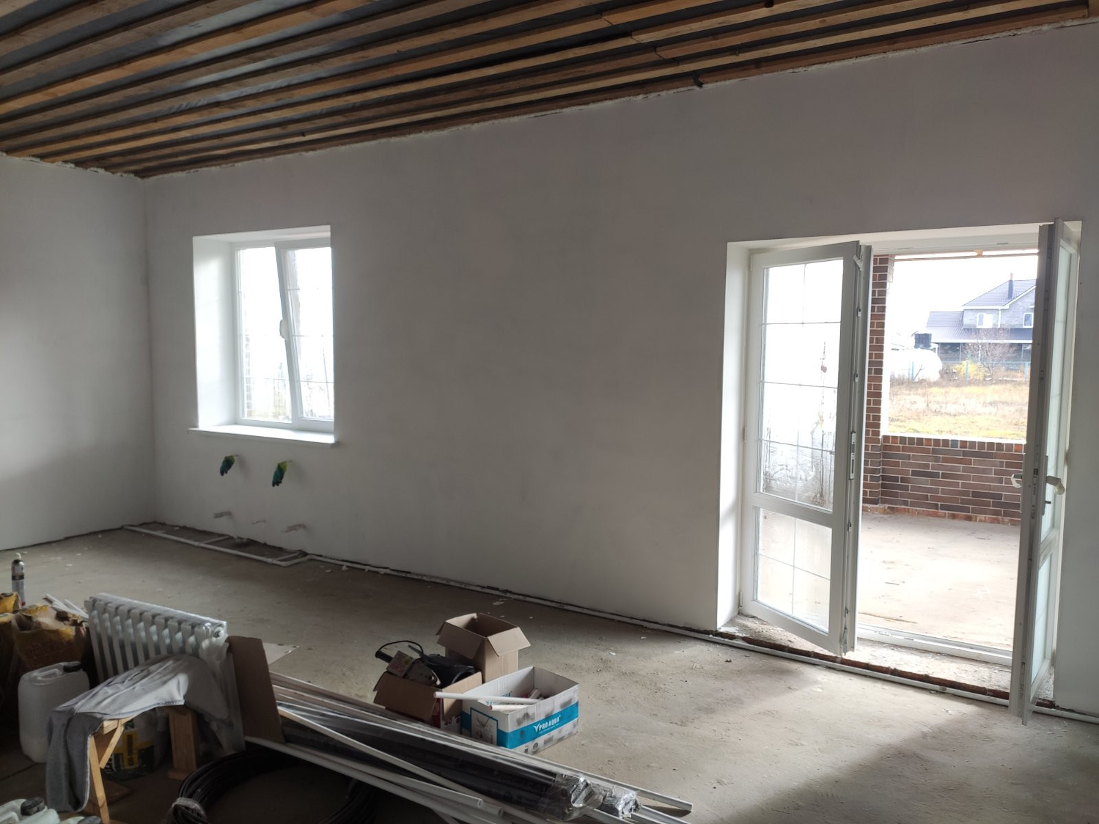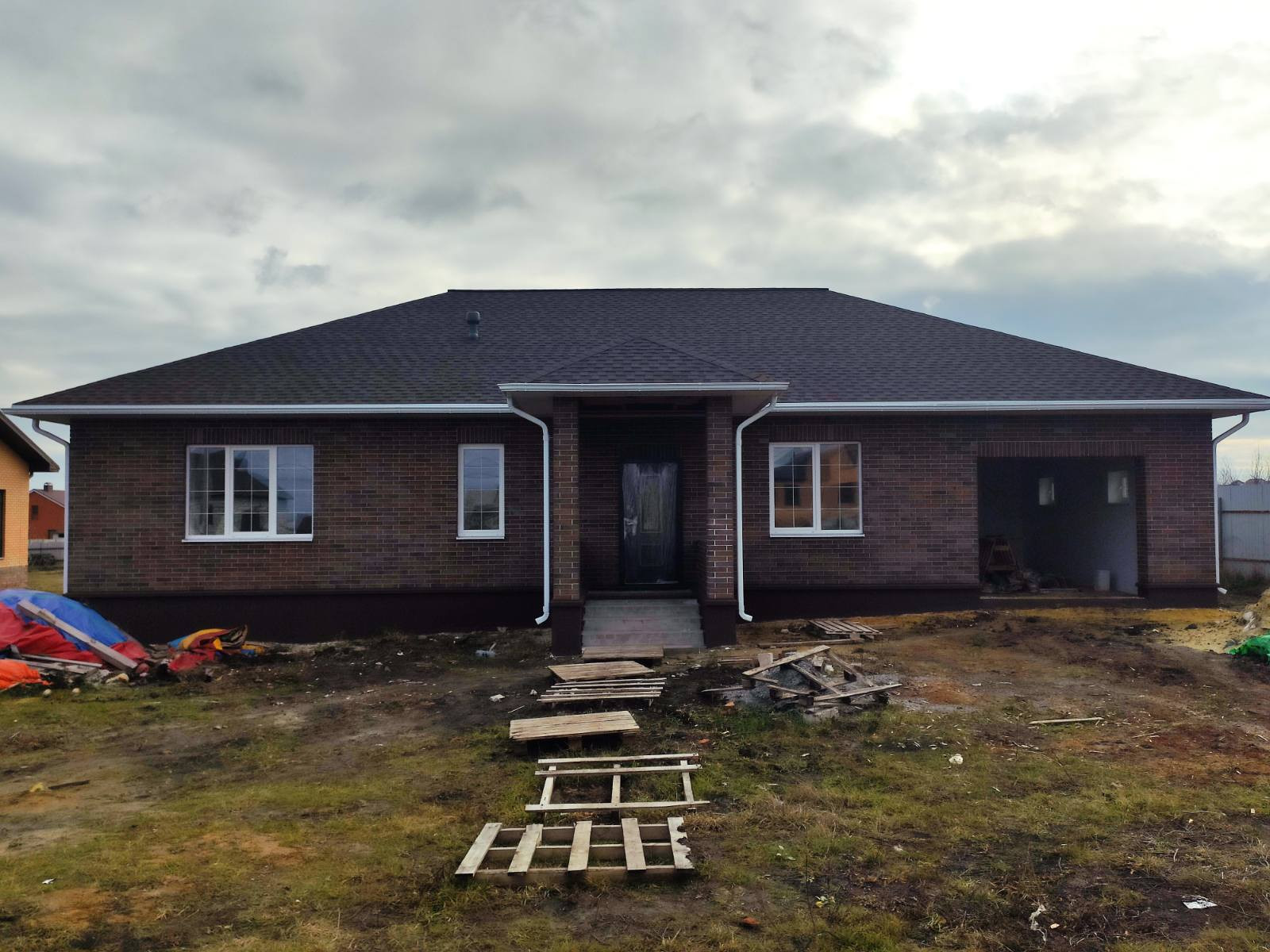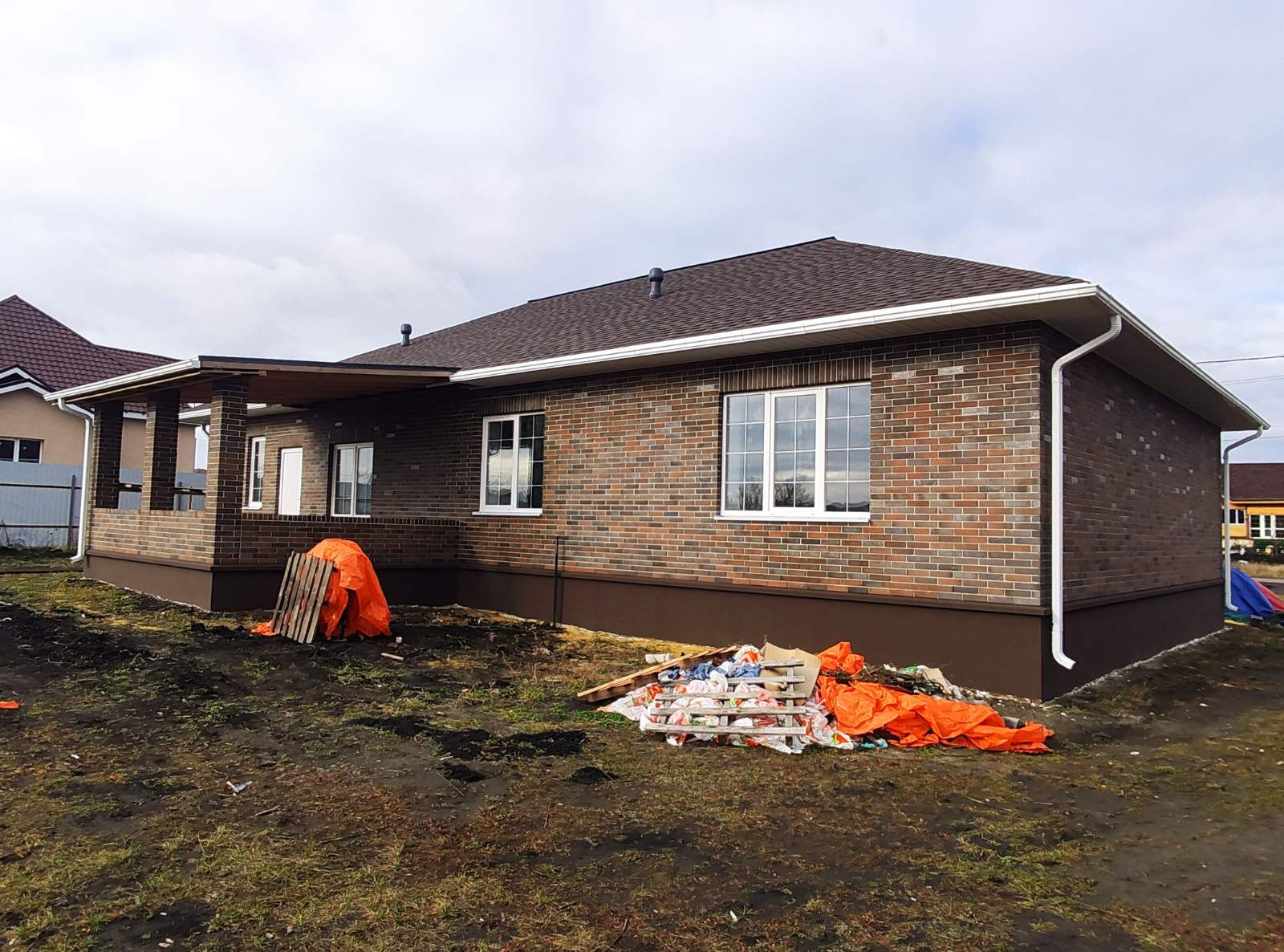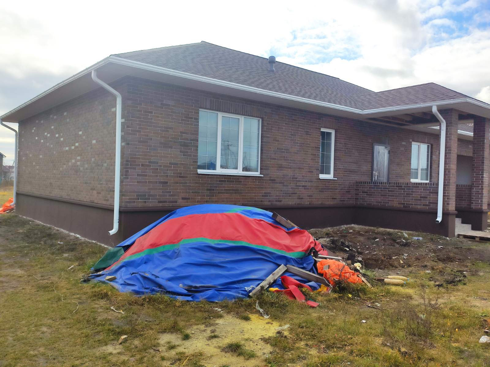 Продается новый дом ул. Лесная, Общая площадь 119 м.кв., участок 15 соток. Свет, газ, вода проведены. Кирпич Тульский BRAER, облицовка. Стены, наружный периметр, облицовка + блок 400 мм. Внутренние перегородки блок 200 мм. Высота потолка 3 м. Окна фирмы VEKA, 70 профиль, 3 стекла с посеребрением. Крыша, гибкая черепица SHINGLAS Джаз, Сицилия. Проведена электропроводка, отопление. Стены оштукатурены, шпаклевка. На полу чистовая стяжка. Большая терраса, крыльцо с навесом.