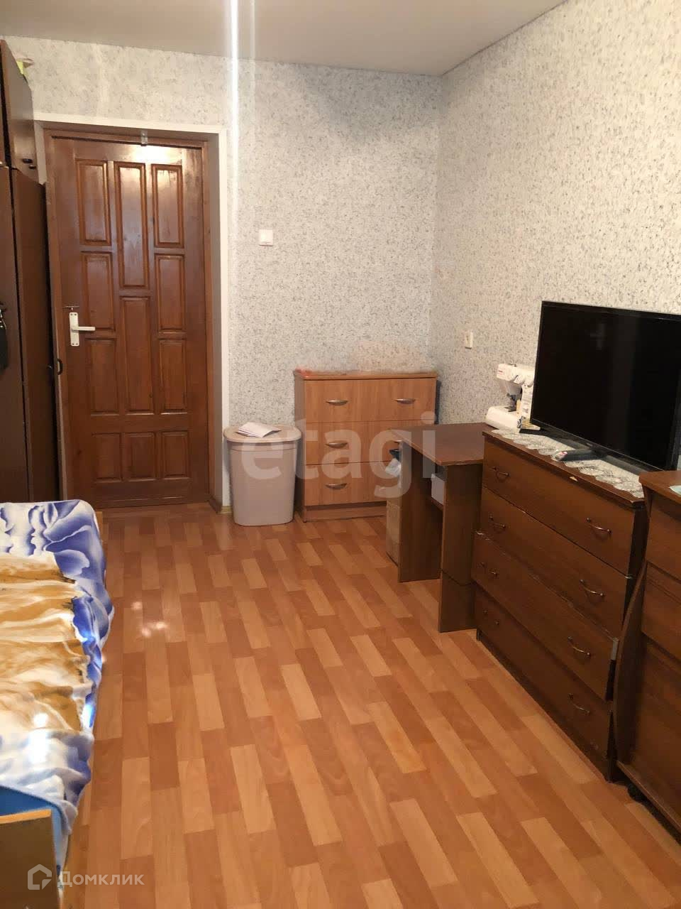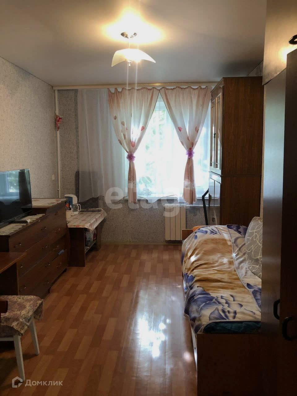 В комнате проведён косметический ремонт(линолеум, окна ПВХ ,натяжной потолок),заменены батареи новая входная дверь.
