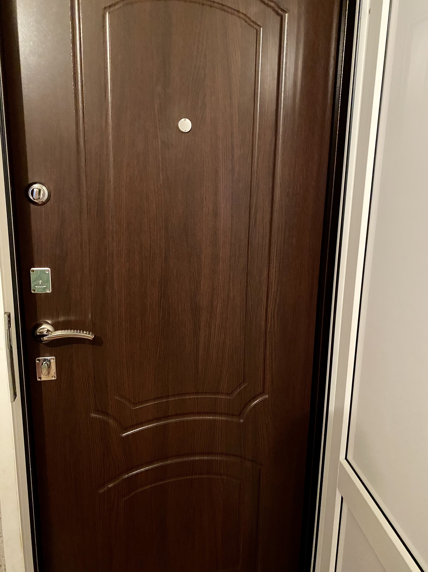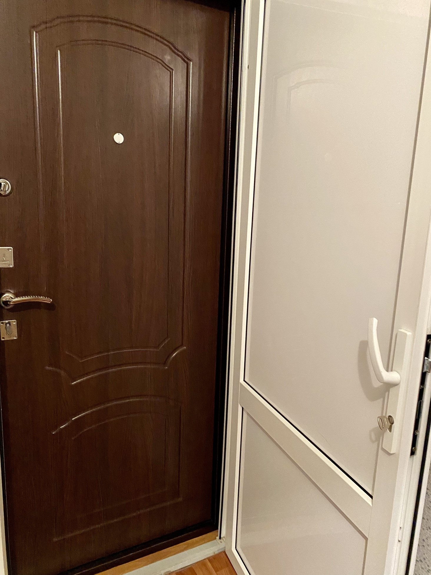 Новая входная - дверь (три замка , два ключа), новая сантехника. Две двери - при входе (что, видно на фото).