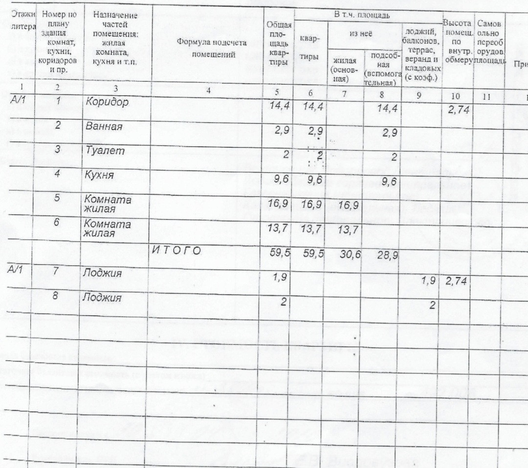 Общая площадь 59.5 м2