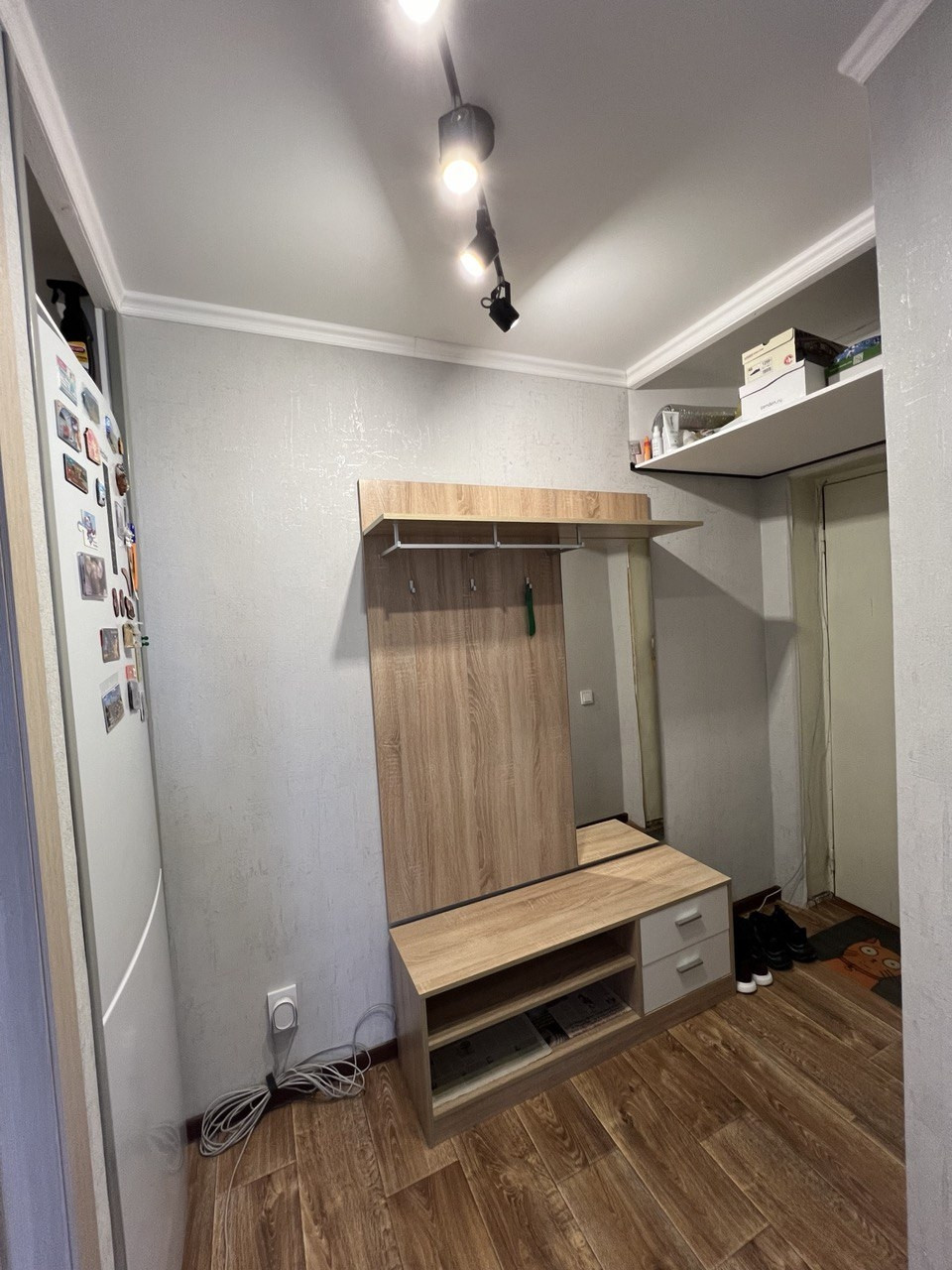 В квартире остается кухонный гартитур, угловой шкаф, кондиционер в гостиной. Трубы заменены на ПВХ, в кухне и спальне заменены радиаторы отопления, по всей квартире проведена новая медная проводка.