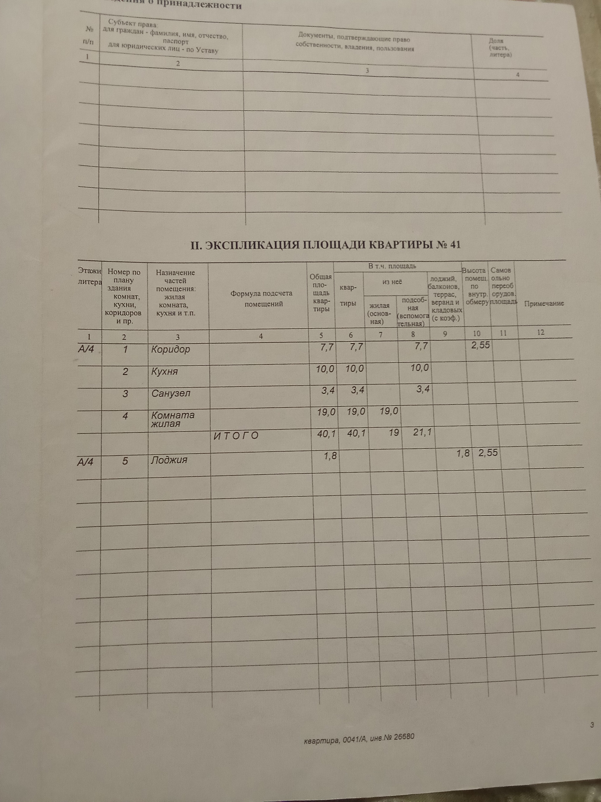 Общая площадь 40.1 м2