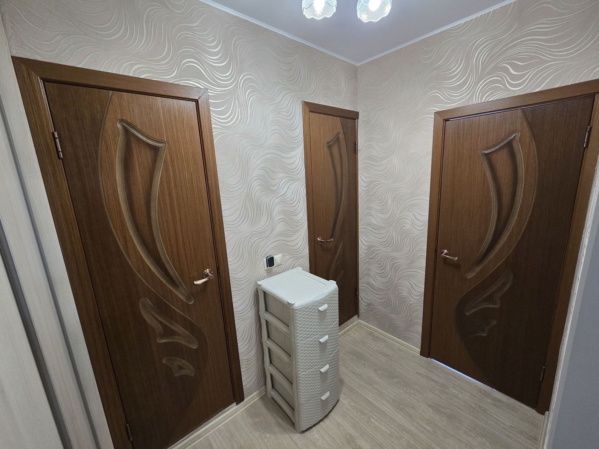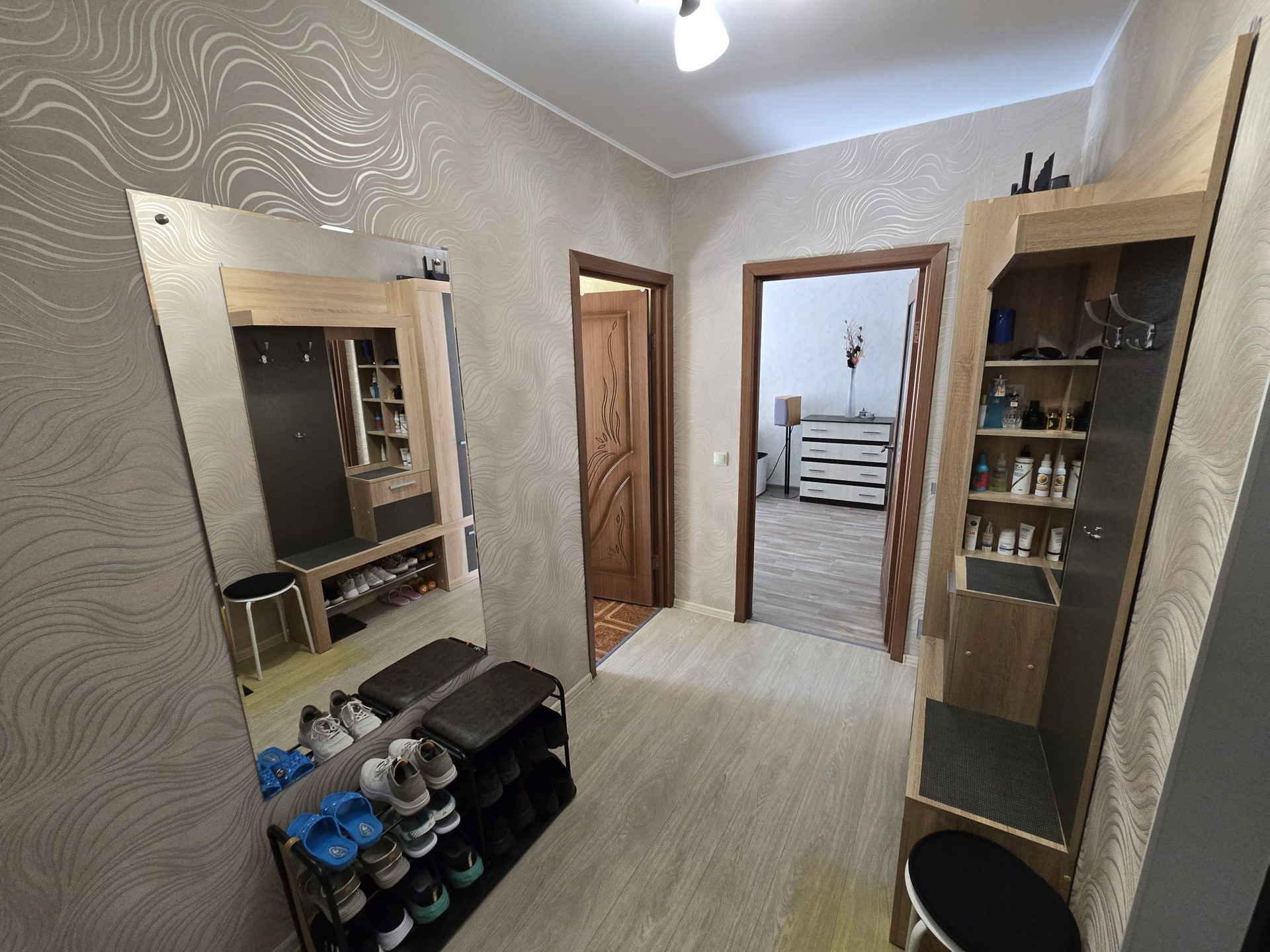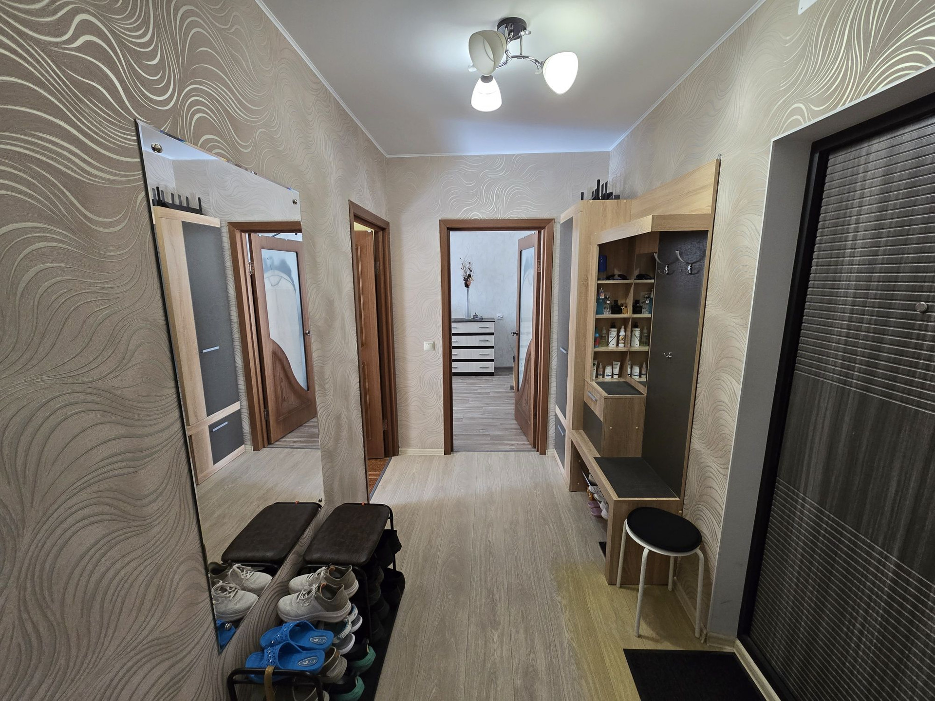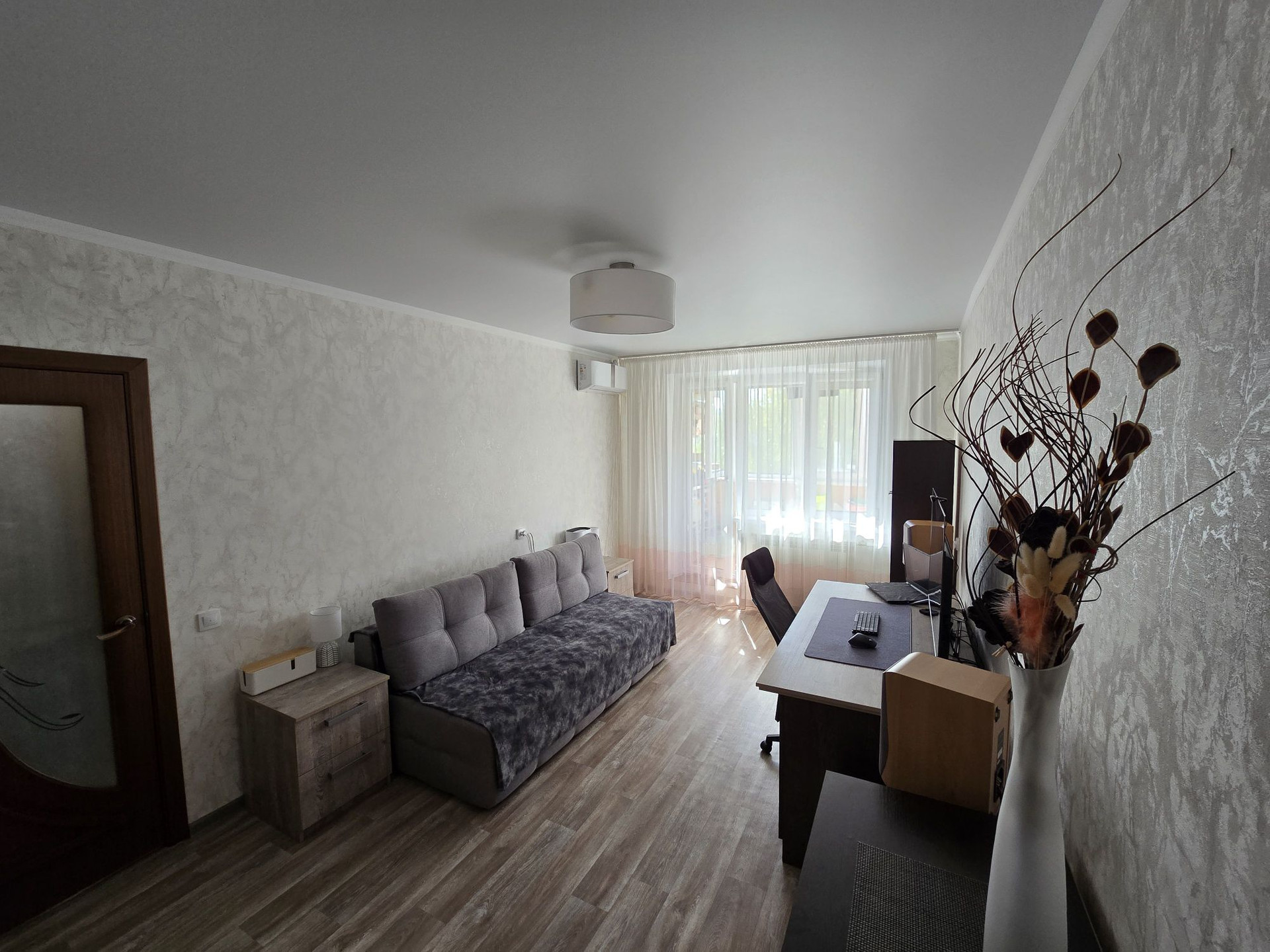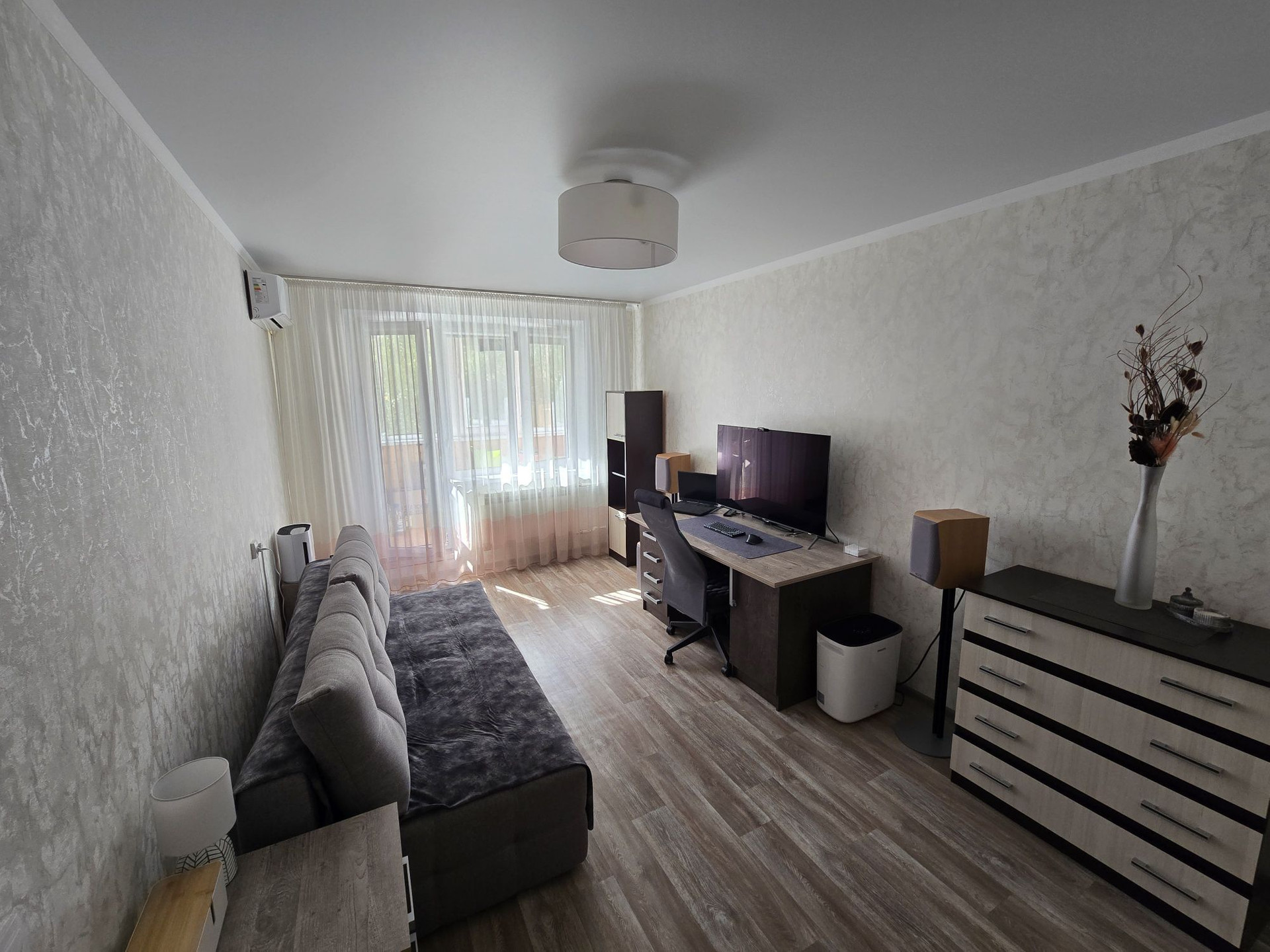 В зале натяжной потолок, в остальных комнатах кроме с/у окрашен. При продаже остаётся кухонный гарнитур с плитой и вытяжкой, кондиционеры и все шкафы, включая прихожую. Соседи хорошие, не шумные. Район отличный, рядом школа, детский сад, аптеки, остановки, ТЦ Европа, ТЦ Спутник, Пятёрочка, OZON, WB и т.д.