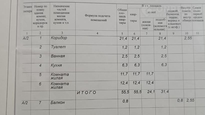 Общая площадь 55.5 м2