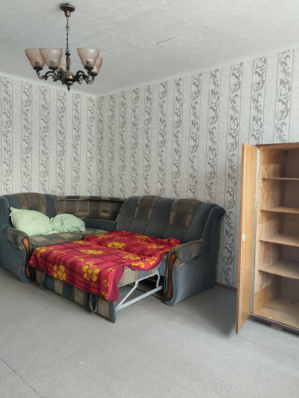 Квартира частично с мебелью есть диван, шифоньер, стол, телевизор, холодильник.