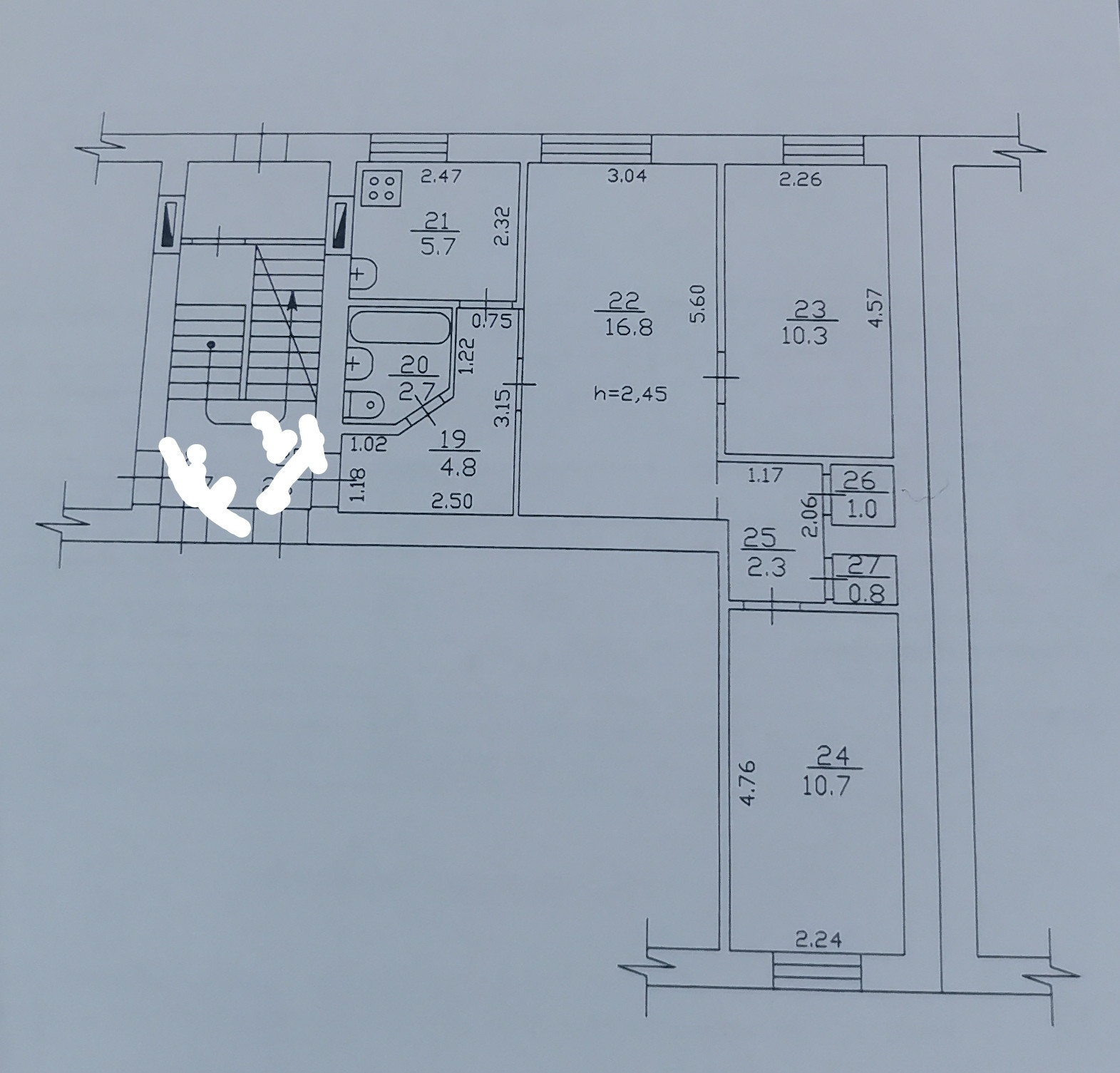 ☑️О/п 55,1 м², состоит из 3 жилых комнат (16,8/10,3/10,7) м², кухни 5,7 м², 2-х коридоров 4,8/2,3 м², 2-х кладовых, санузла.