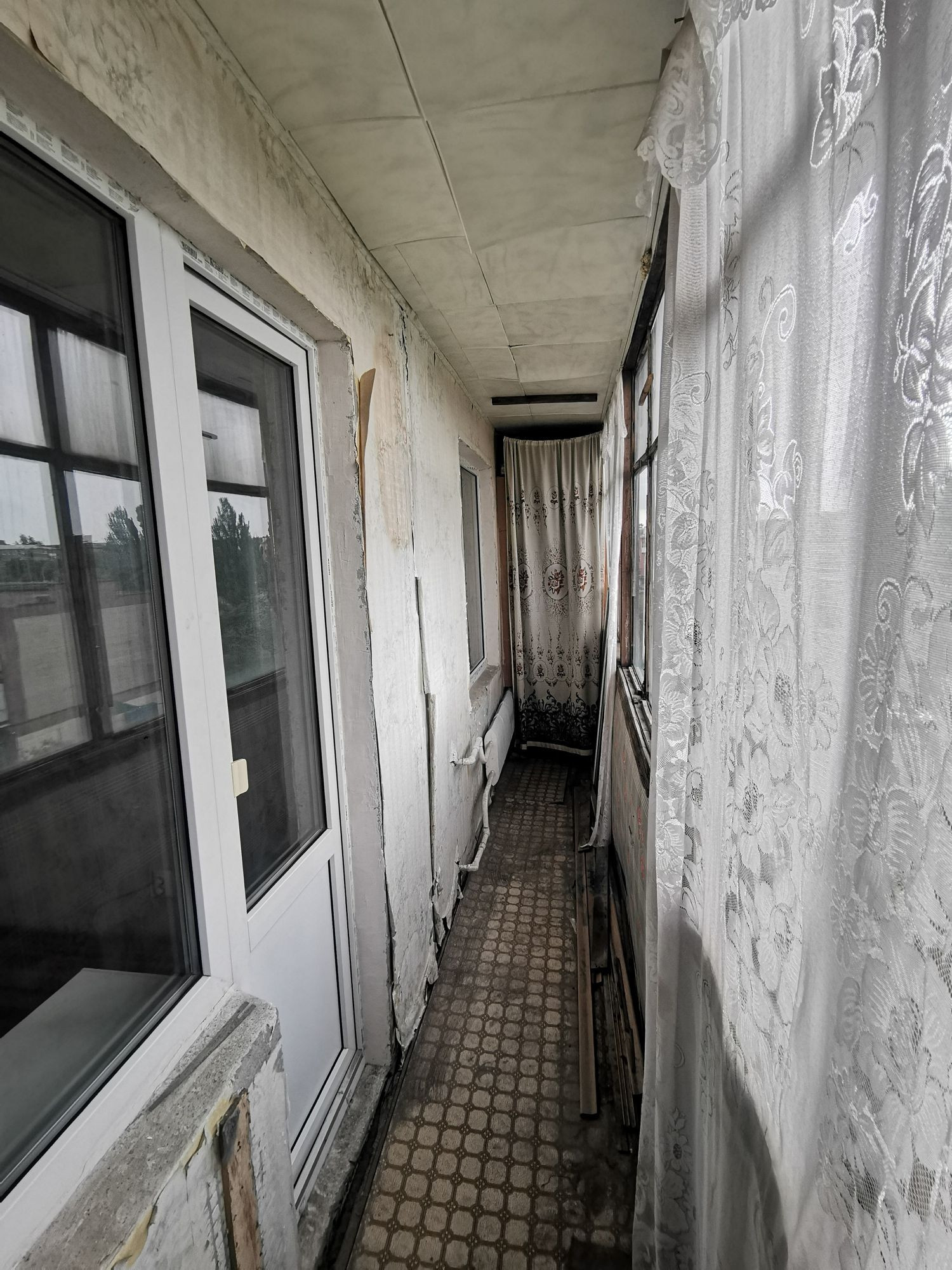 ☑️Лоджия 6 м, застеклена деревянными рамами;