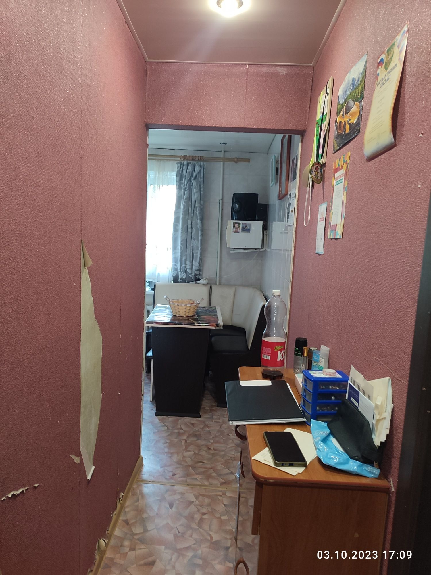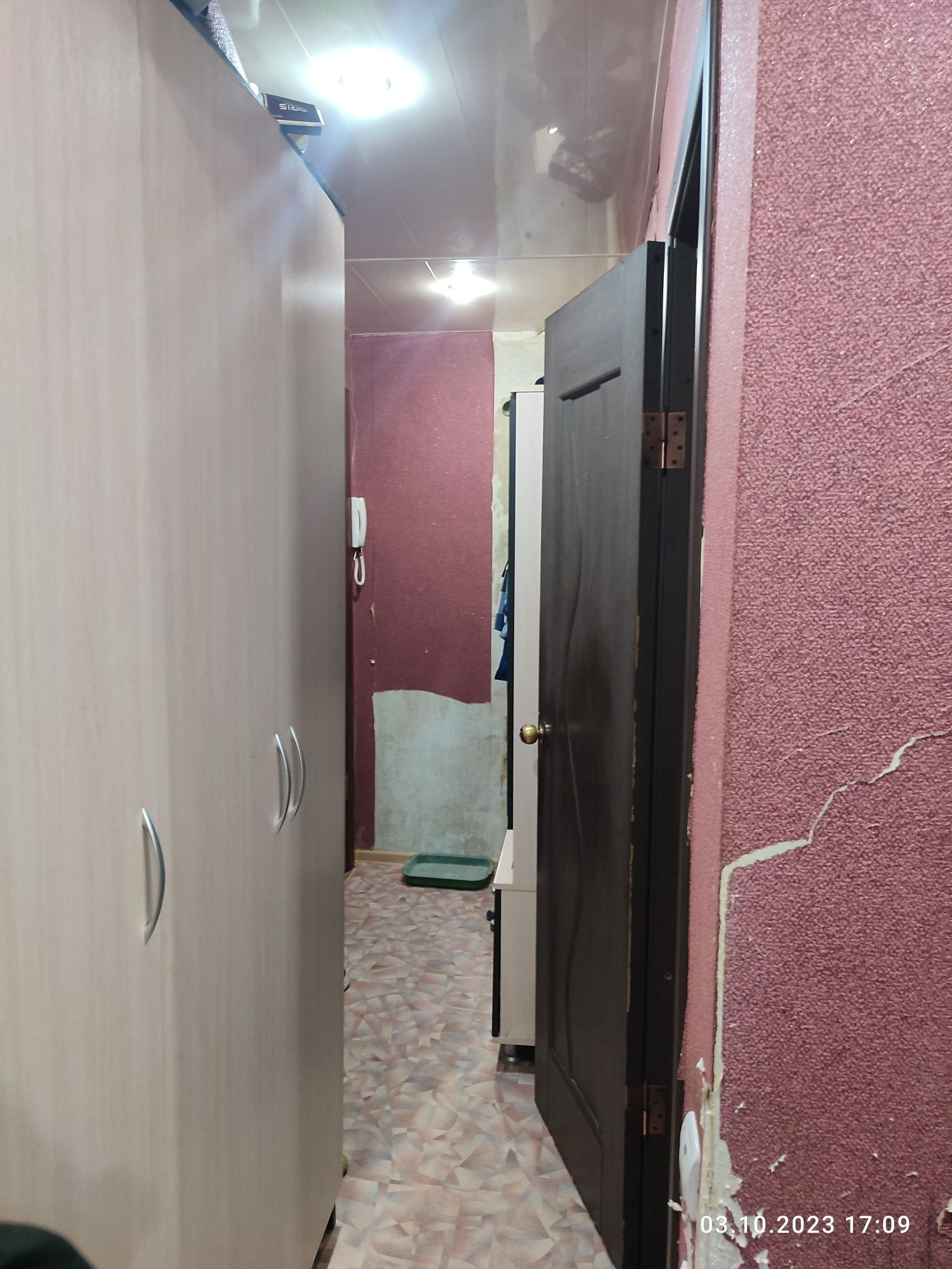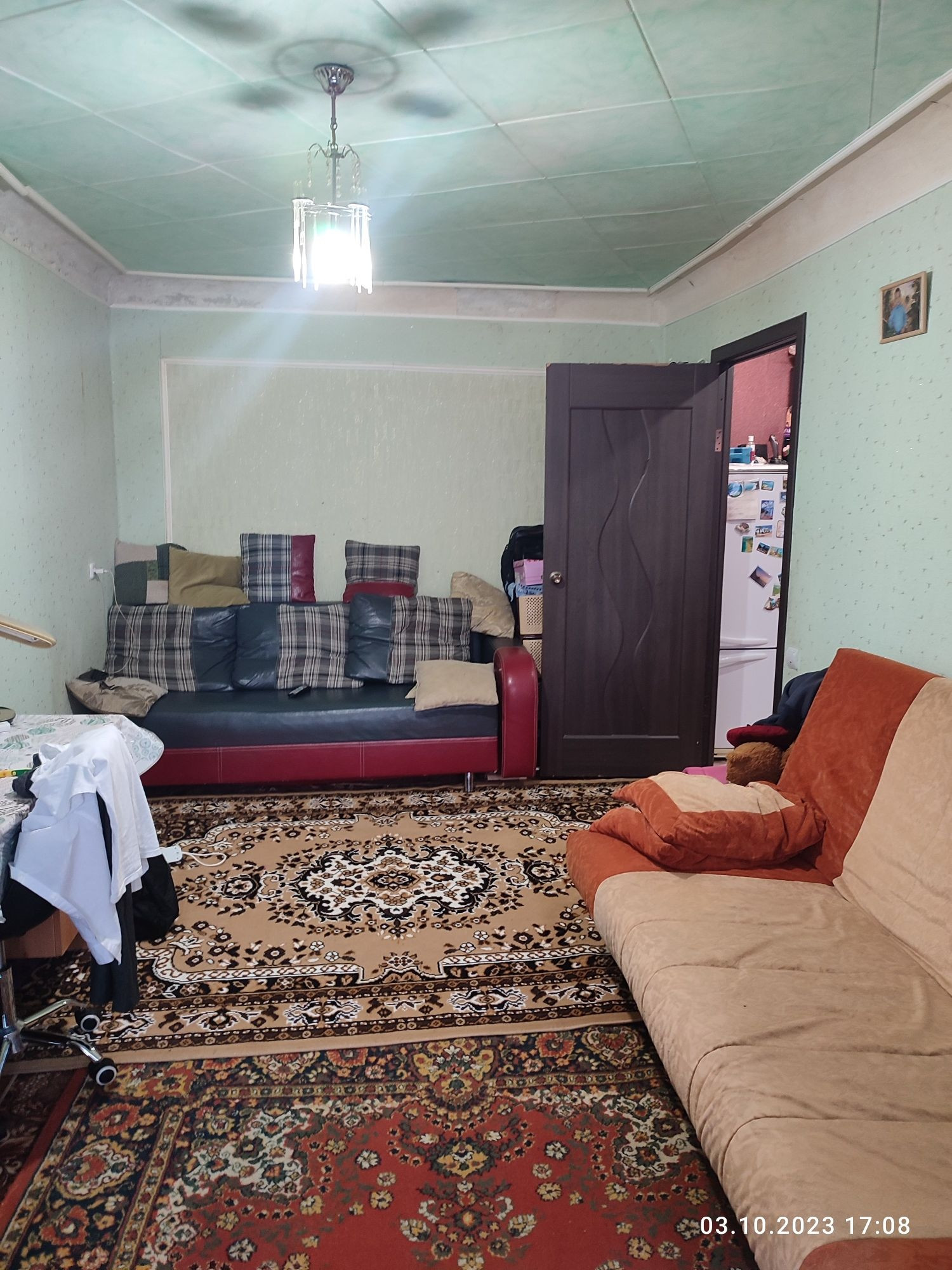 ☑️В зале : напольное покрытие доски,стены оклеены обоями ,потолок оклееный : плиткой❗
