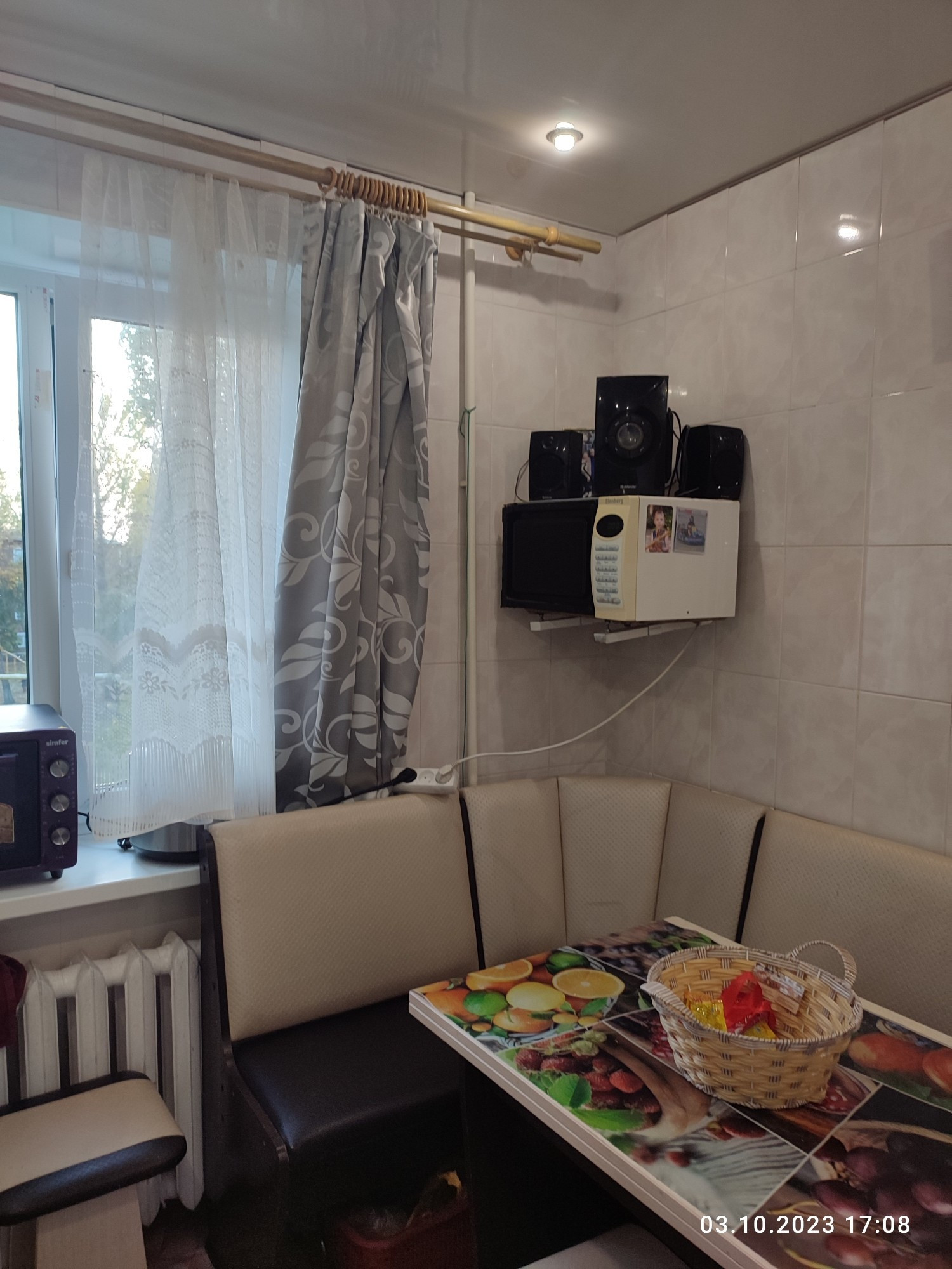 ☑️Кухня : пол застелен линолеумом, облицована плиткой  ,потолок обшит пластиком с точечным освещением ‼️
