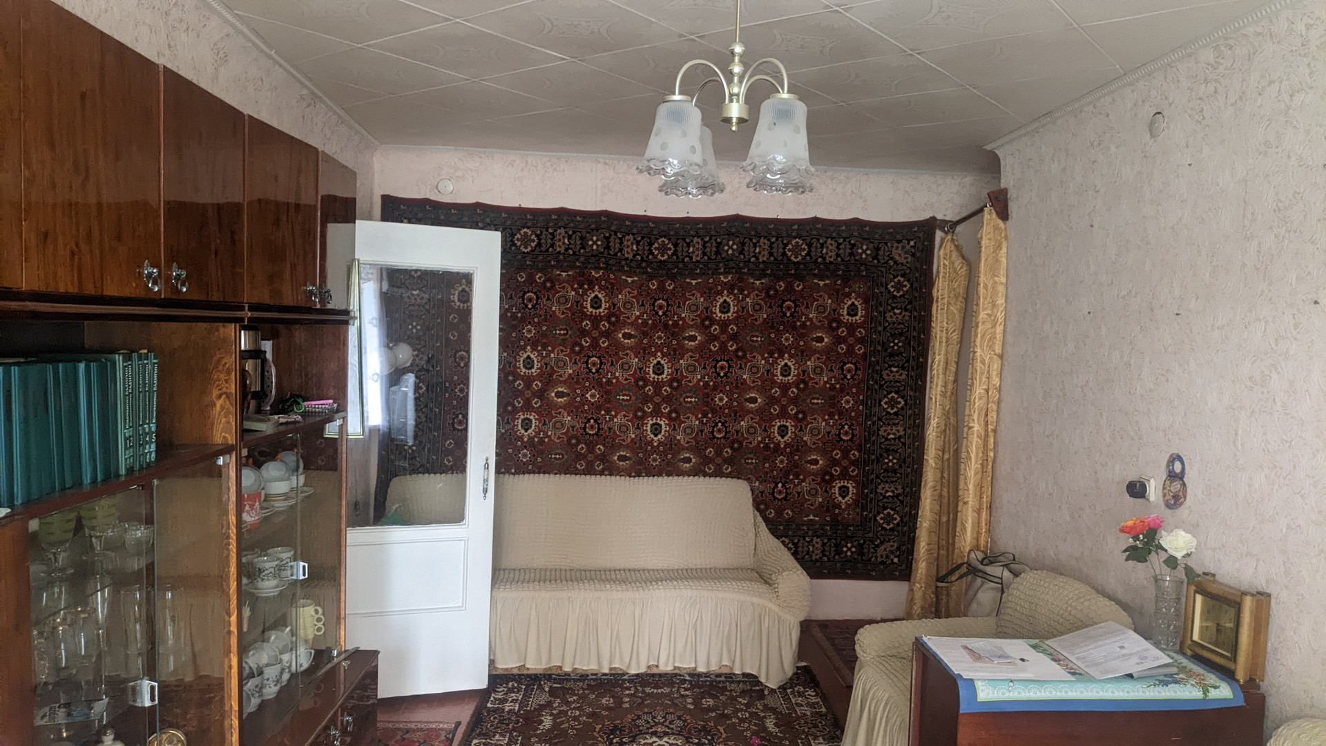 ✔️потолок: обои, плитка ПВХ;
