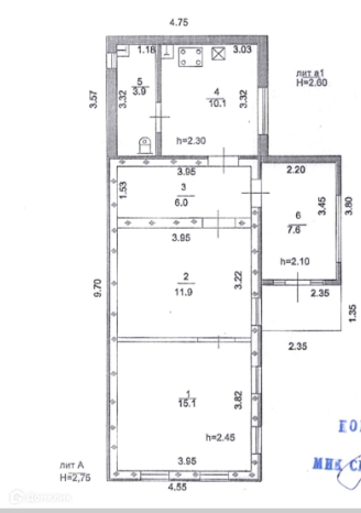 Высота потолков (м.): 2.45