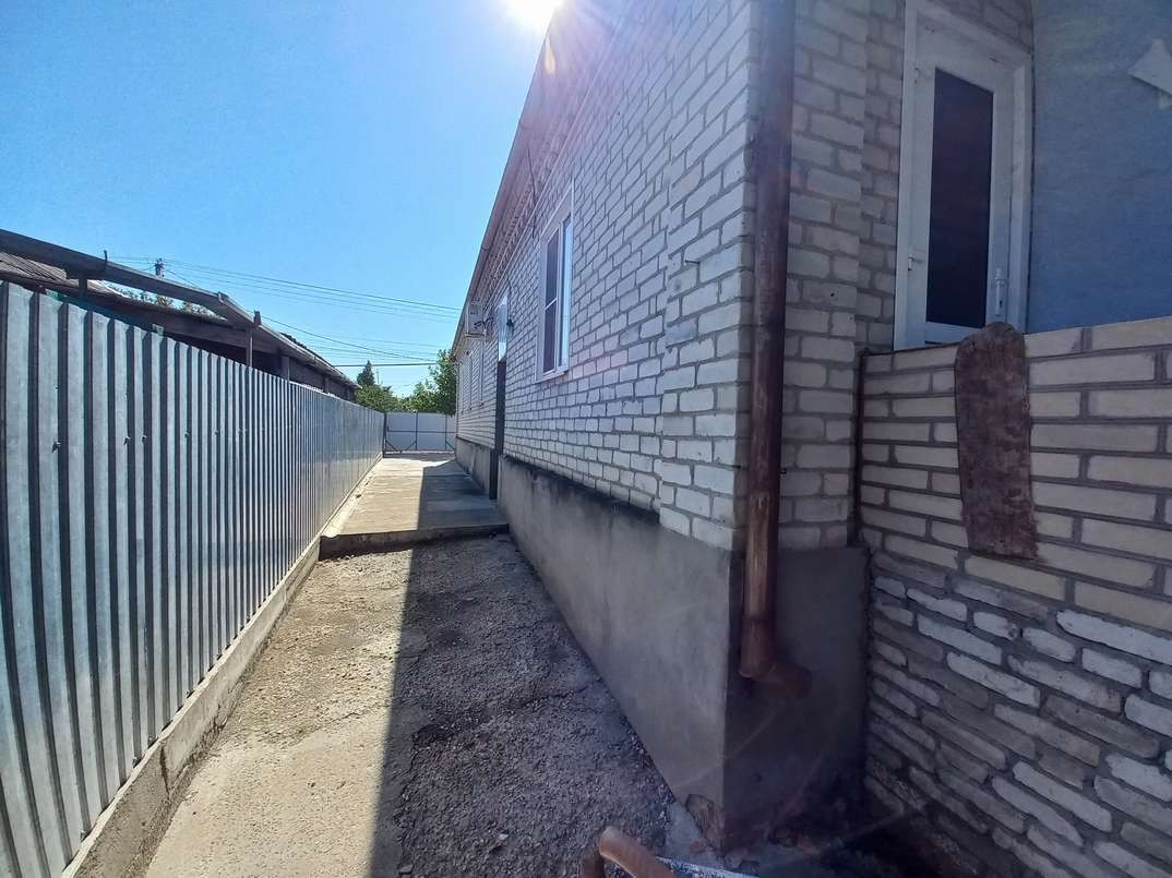 Площадь Дома 88 м2, саманный обложенный белым силикатным Кирпичом, толщина стен-40 см, Крыша шифер(водостоки на месте)