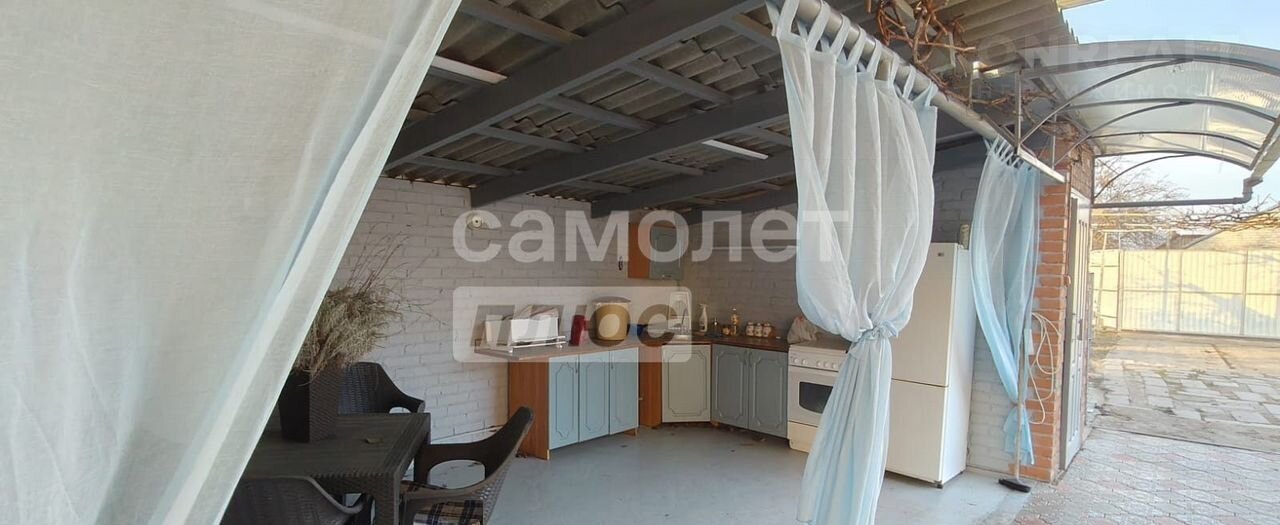 -на улице во дворе полностью остается кухонных гарнитур в летней кухне, большой диван под навесом на открытой веранде.