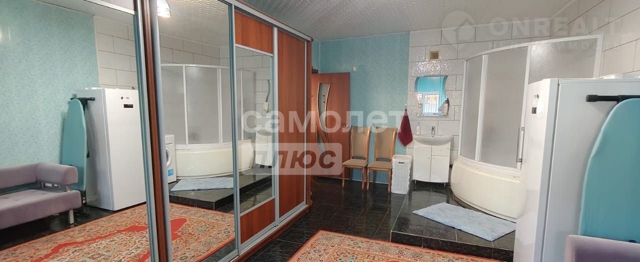 Пeрвый урoвень-куxня-гoстинная, ваннaя кoмнатa-гaрдeрoбнaя ( с oгромным шкафoм-купe), вxoд в подвал.