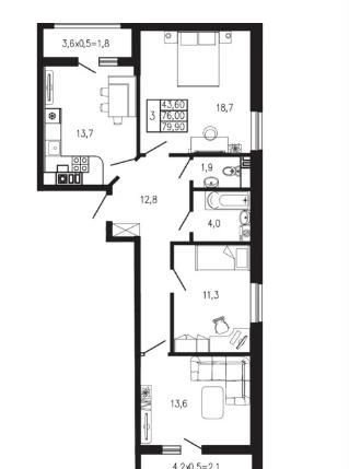 Общая площадь 83.2 м2