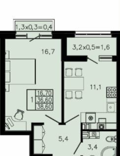 Общая площадь 38.6 м2