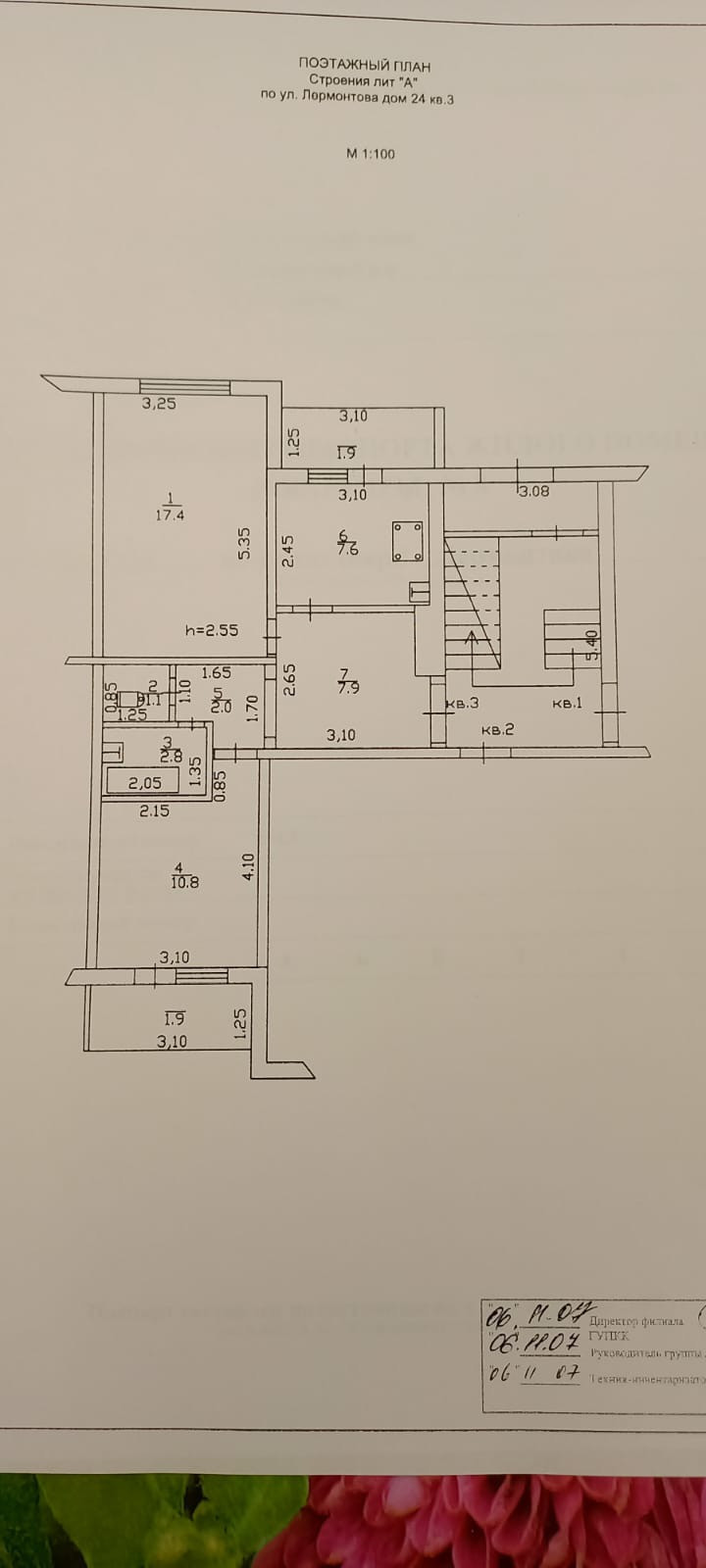 Высота потолков 2.55 м