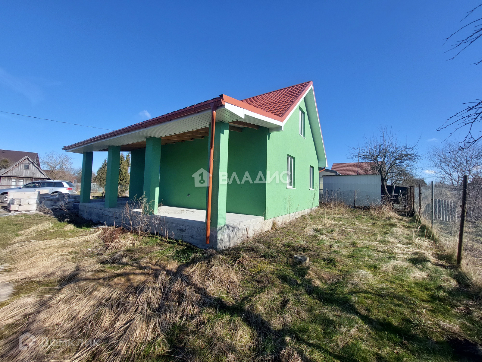 Перед входом – парковка для автомобилей. Участок – 4 сотки,