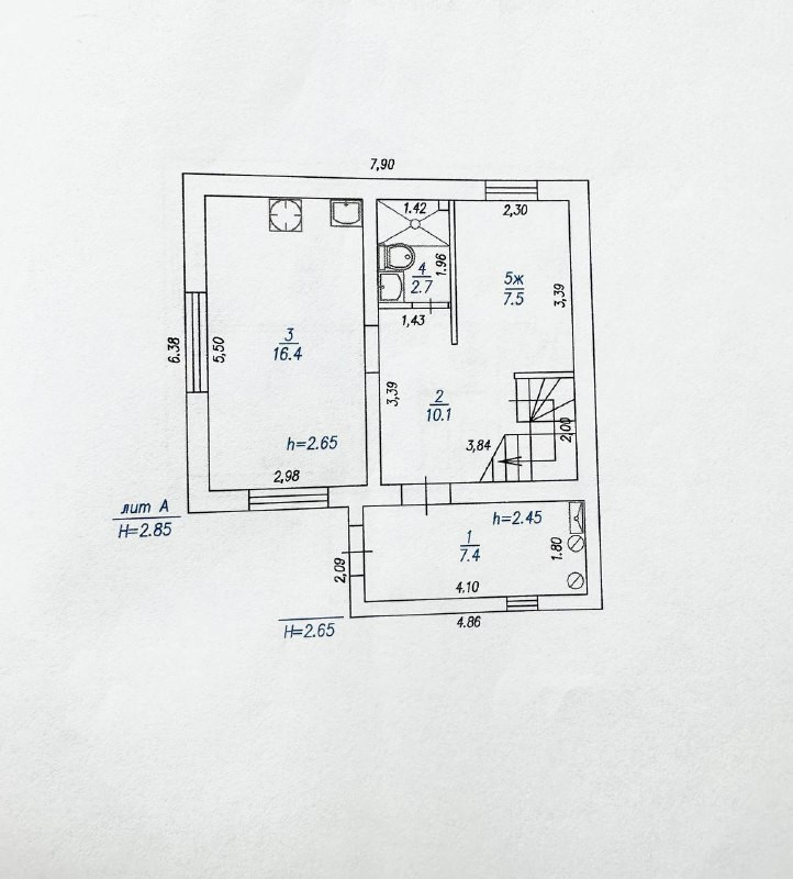 1 этаж: просторная кухня-гостиная с двумя окнами на солнечную сторону, светлая прихожая, жилая комната (или рабочий кабинет), санузел, техническое помещение.