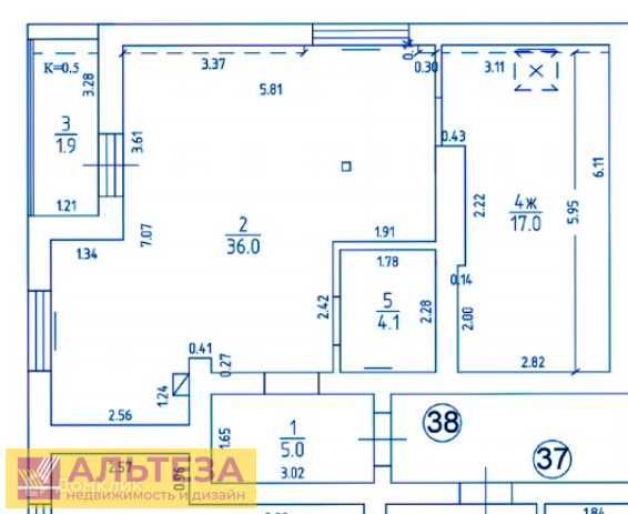 Площадь кухни 36 м2