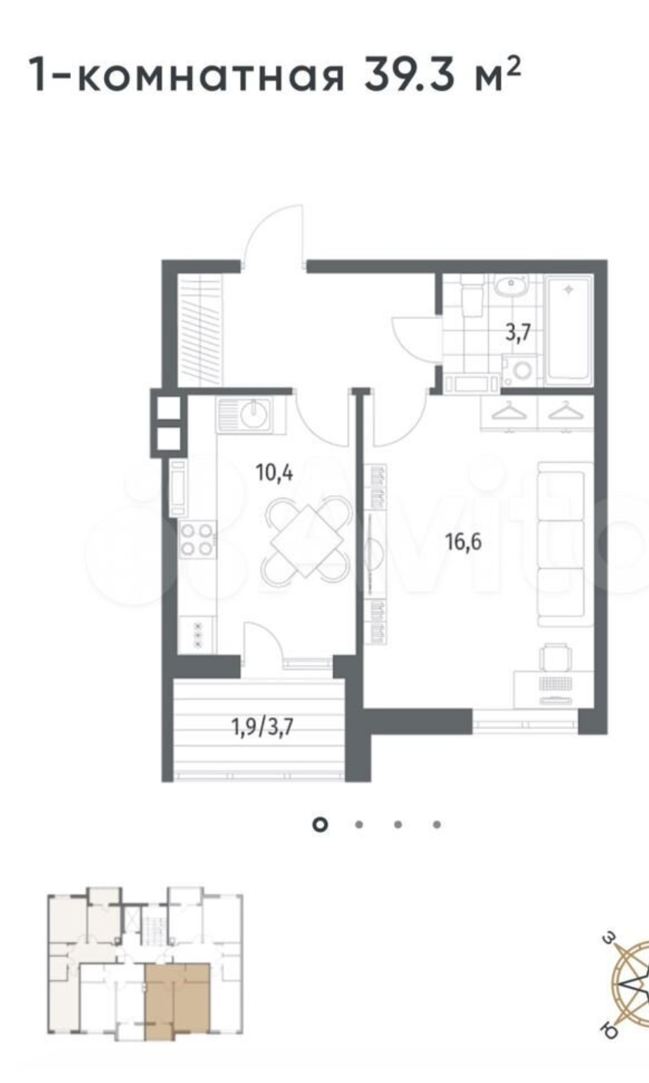 Общая площадь 39.3 м2