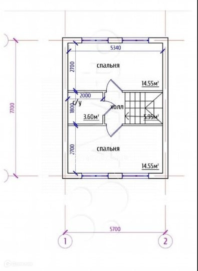 две изолированные комнаты по 14,55 кв м, совмещенный сан узел и холл.