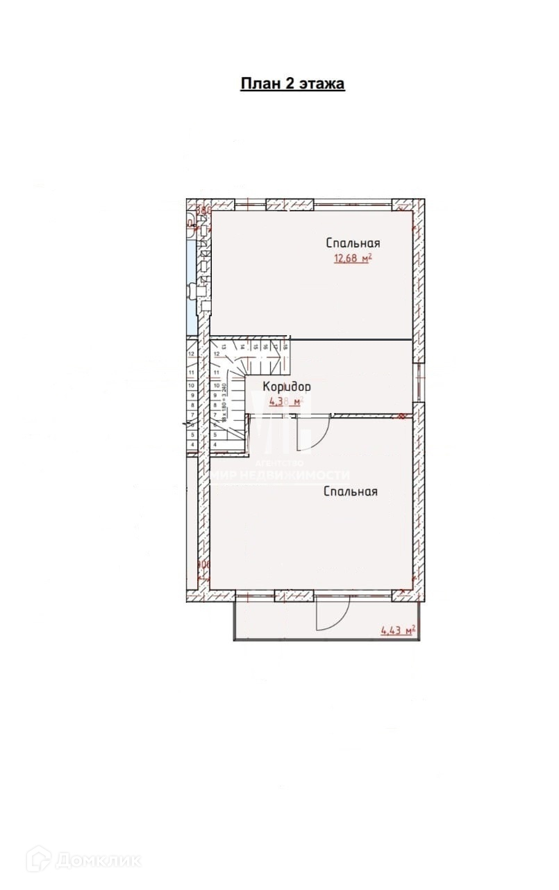 2 этаж : две комнаты 21,33+18,34 кв.м., санузел, коридор.