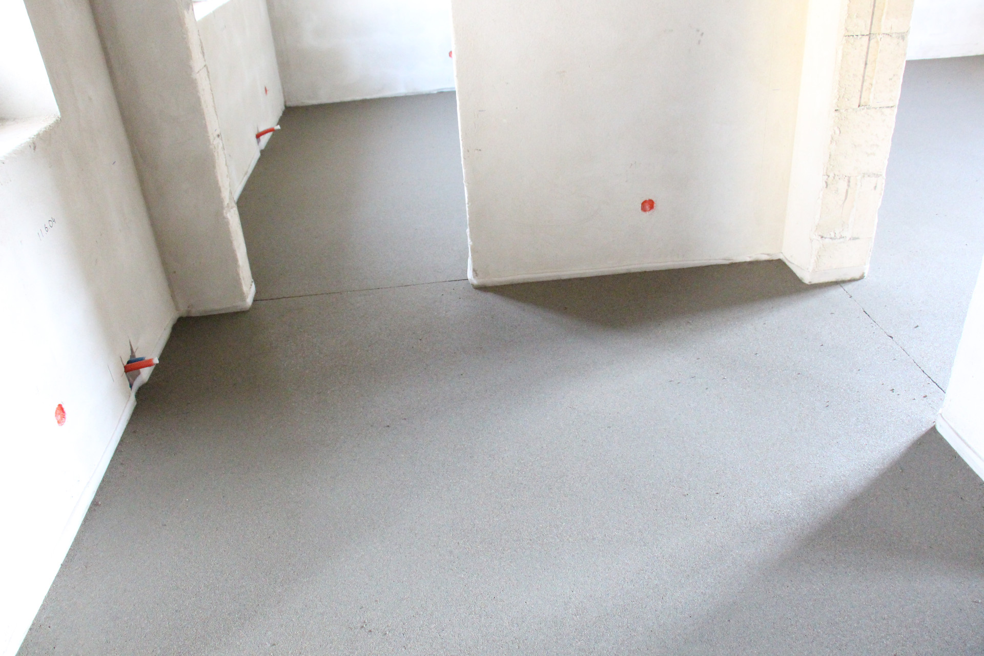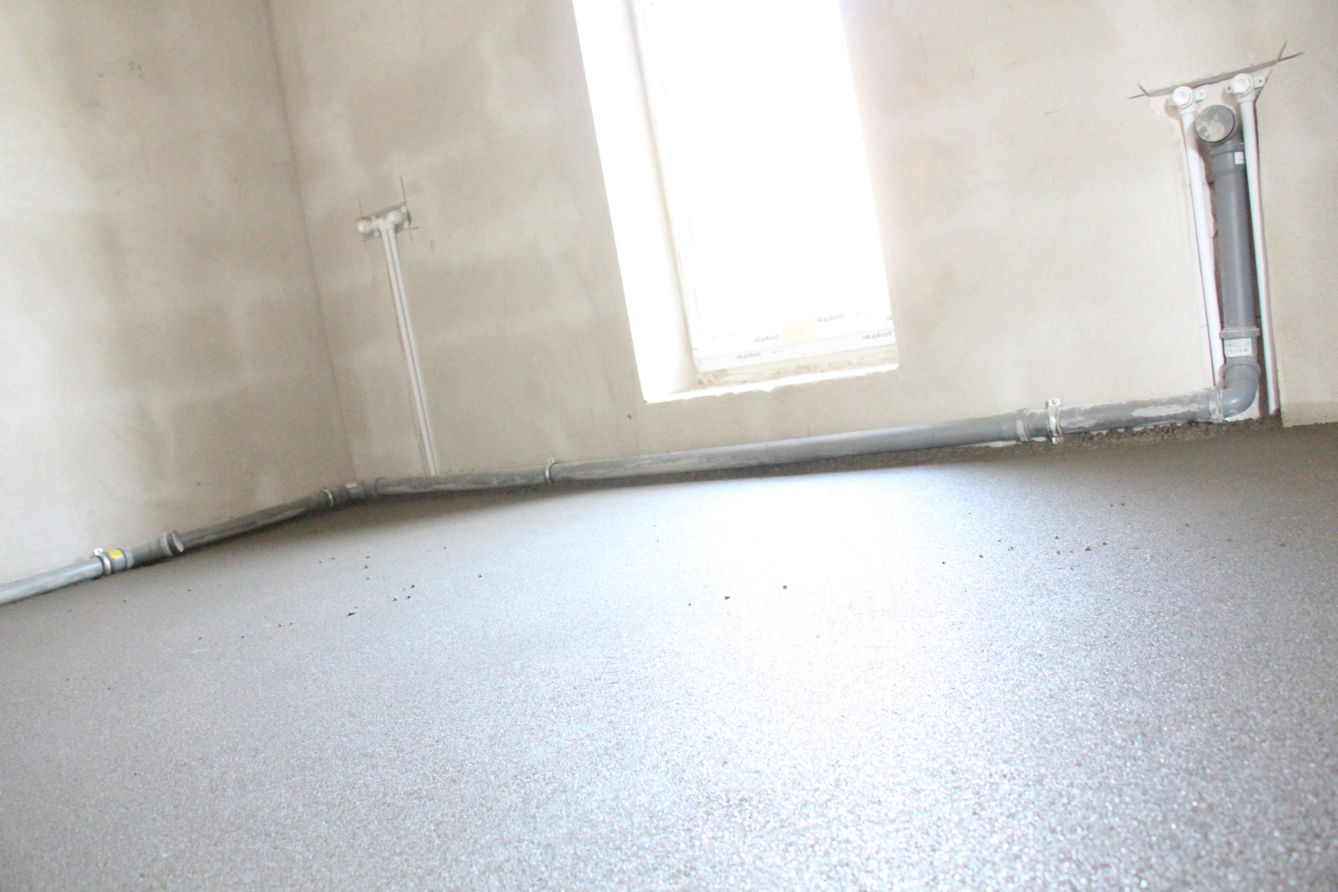 Внутренняя отделка – выполнена машинная штукатурка стен, на полу залиты стяжки с деформационными швами.