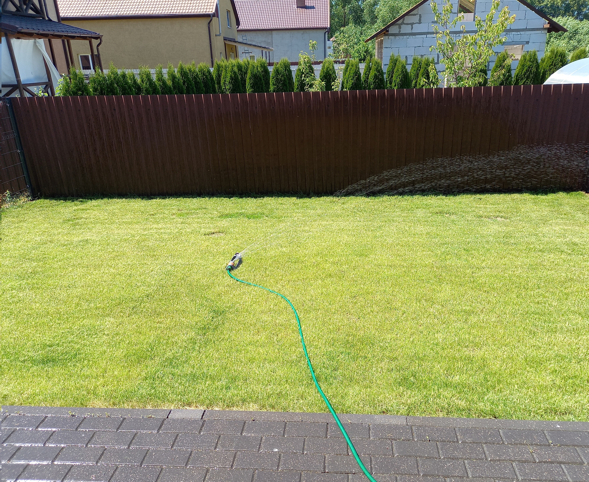 На зеленую зону и на входную группу выведены поливочные краны.