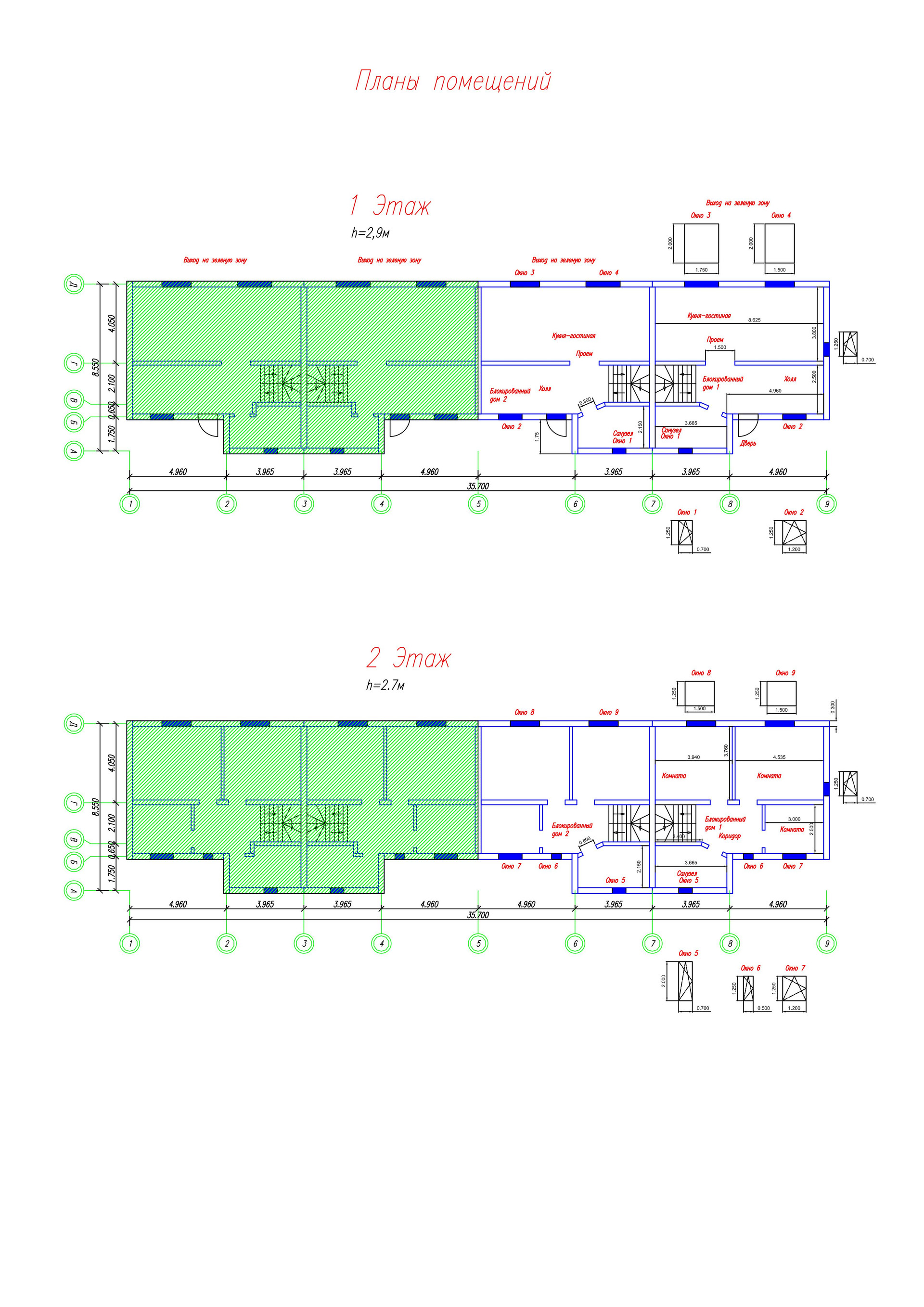 Над всеми проемами и окнами выполнены железобетонные перемычки, под перекрытиями 1 и 2 этажей выполнен железобетонный армопояс.