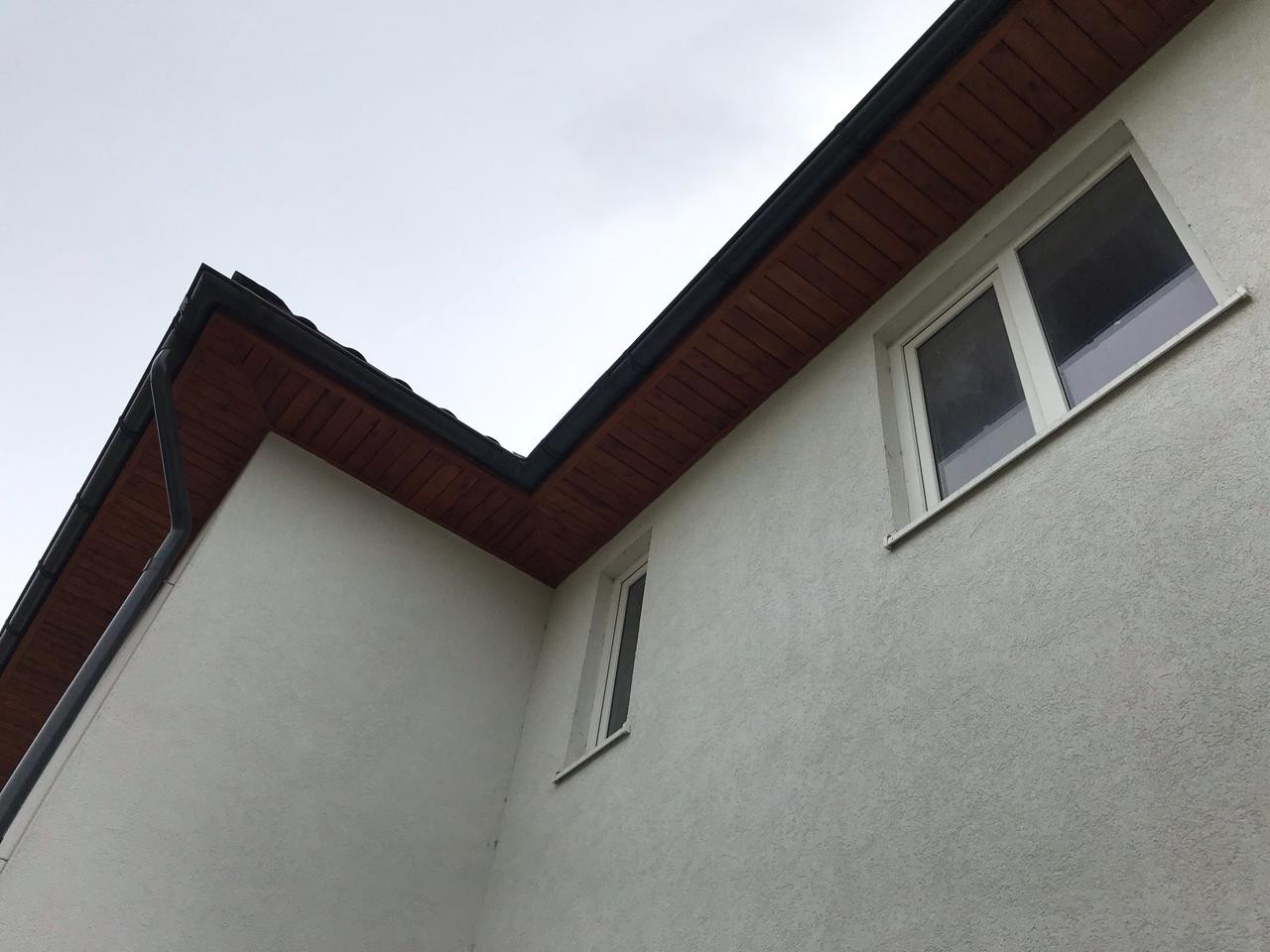 По периметру смонтирована водосточная система, на кровле установлены снегозадержатели.