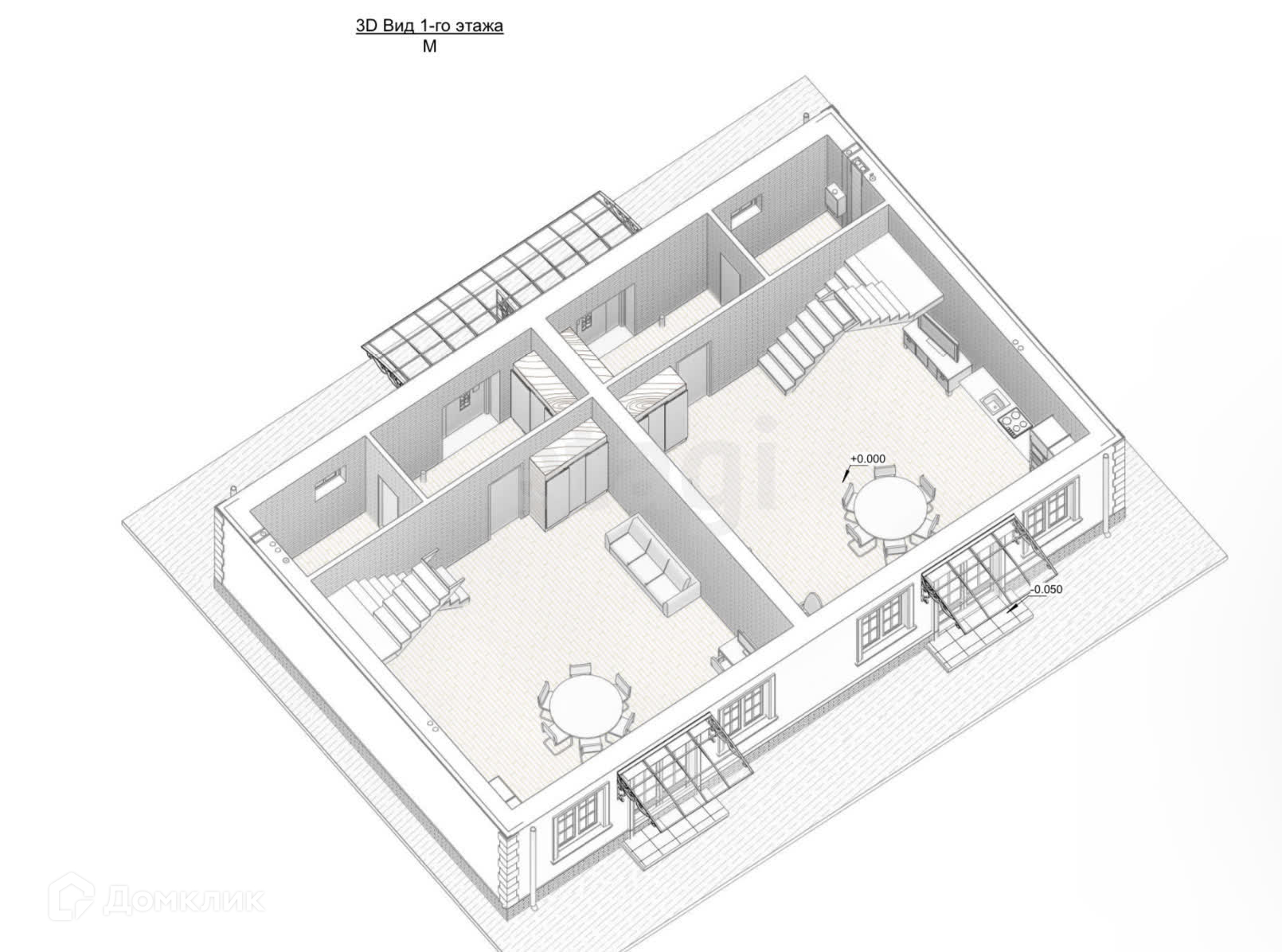 На ПЕРВОМ этаже расположены кухня-гостиная с выходом во внутренний дворик, холл и совмещенный санузел, высота потолка 3.1 метра.