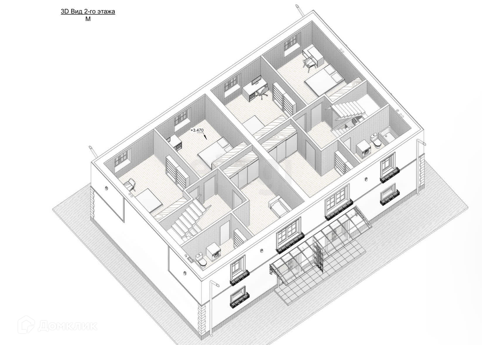 На ВТОРОМ этаже от двух до трёх изолированных эргономичных спален на разные стороны дома и основная просторная ванная комната с окном, высота потолка 2.8 метра.