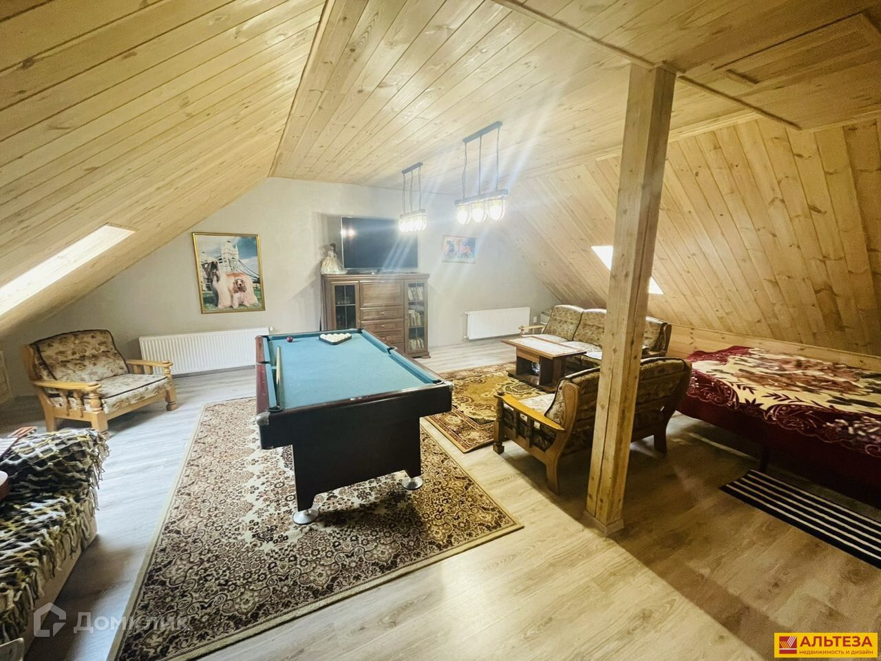 На 3 этаже мансарда, стоят радиаторы, полноценная готовая комната с мебелью и бильярдом.
