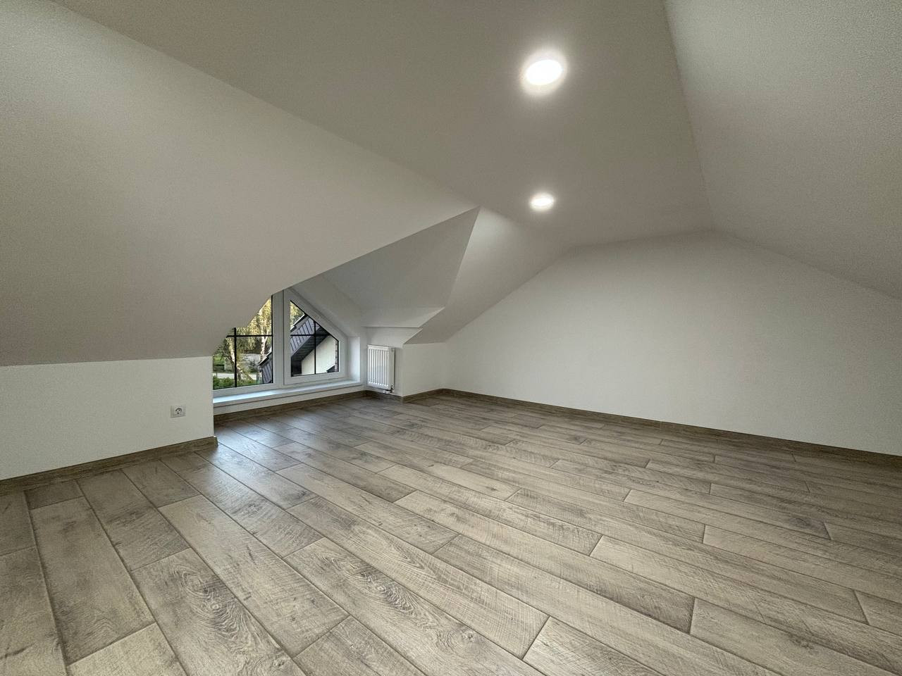 Площадь 95 кв.м. в двух этажах, имеется третий этаж -мансарда.