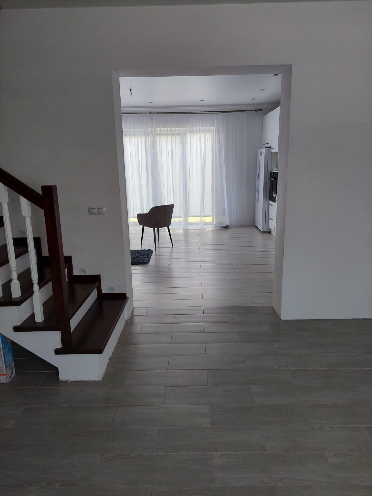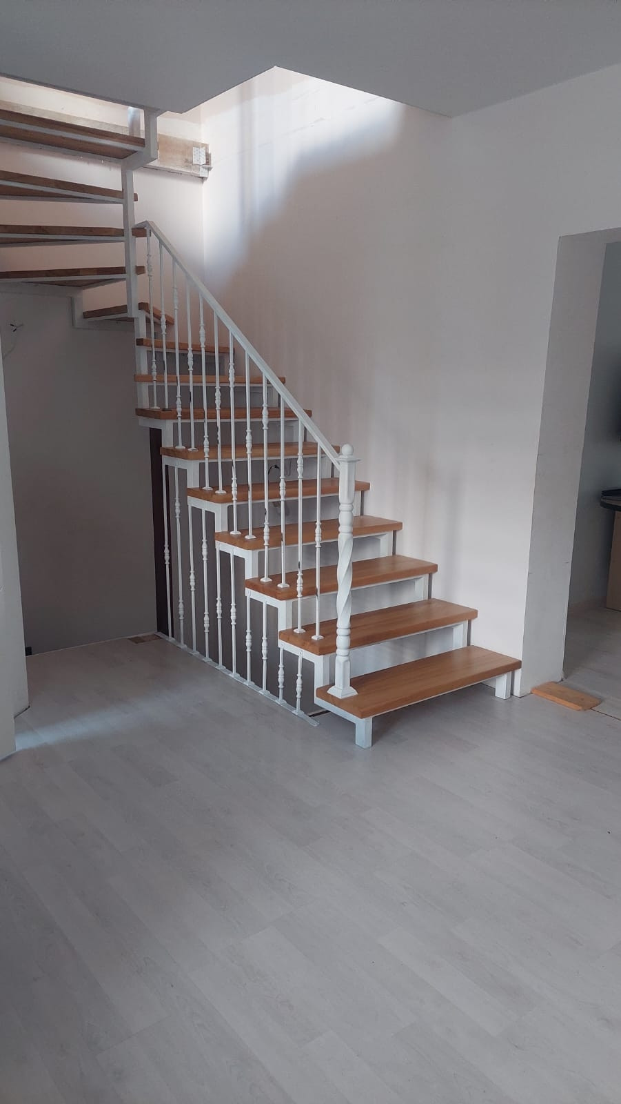 На первом этаже просторный холл, большая кухня-зал 30 м кв с выходом в личный палисадник.