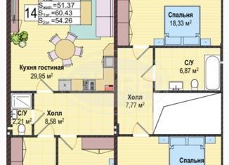 Жилая: 51.37 м2