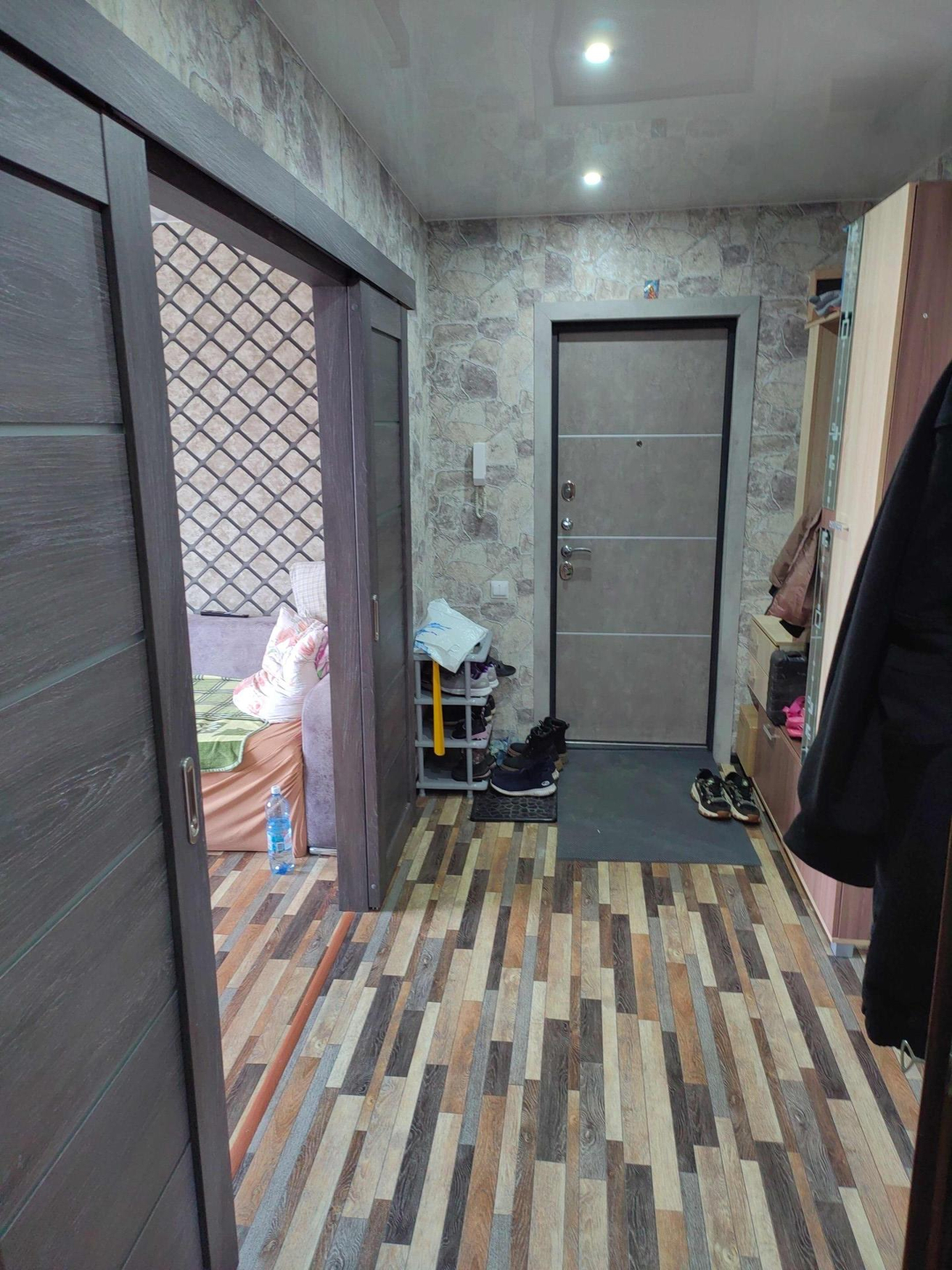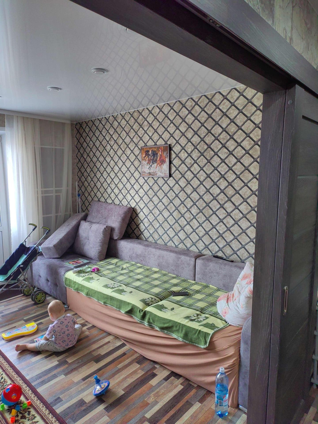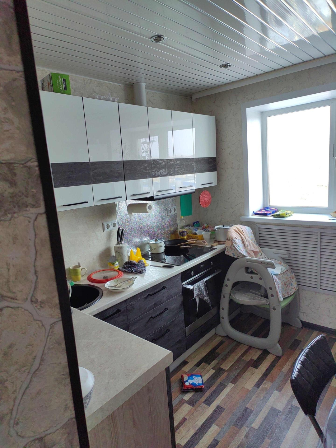 Тёплая, сухая квартира. Ремонт сделан в 2020 году- замена радиаторов отопления, выравнивание стен, новая сантехника, новая проводка, новый балконный блок(окно, дверь) и входная дверь. Натяжной потолок, на полу линолеум. Кухню можем оставить за доплату (делалась на заказ по нашим размерам, доводчики  и встроенная техника). Снаружи сделано утепление. Балкон не застеклен.