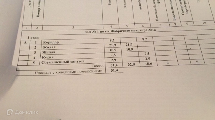 Общая площадь 51.4 м2