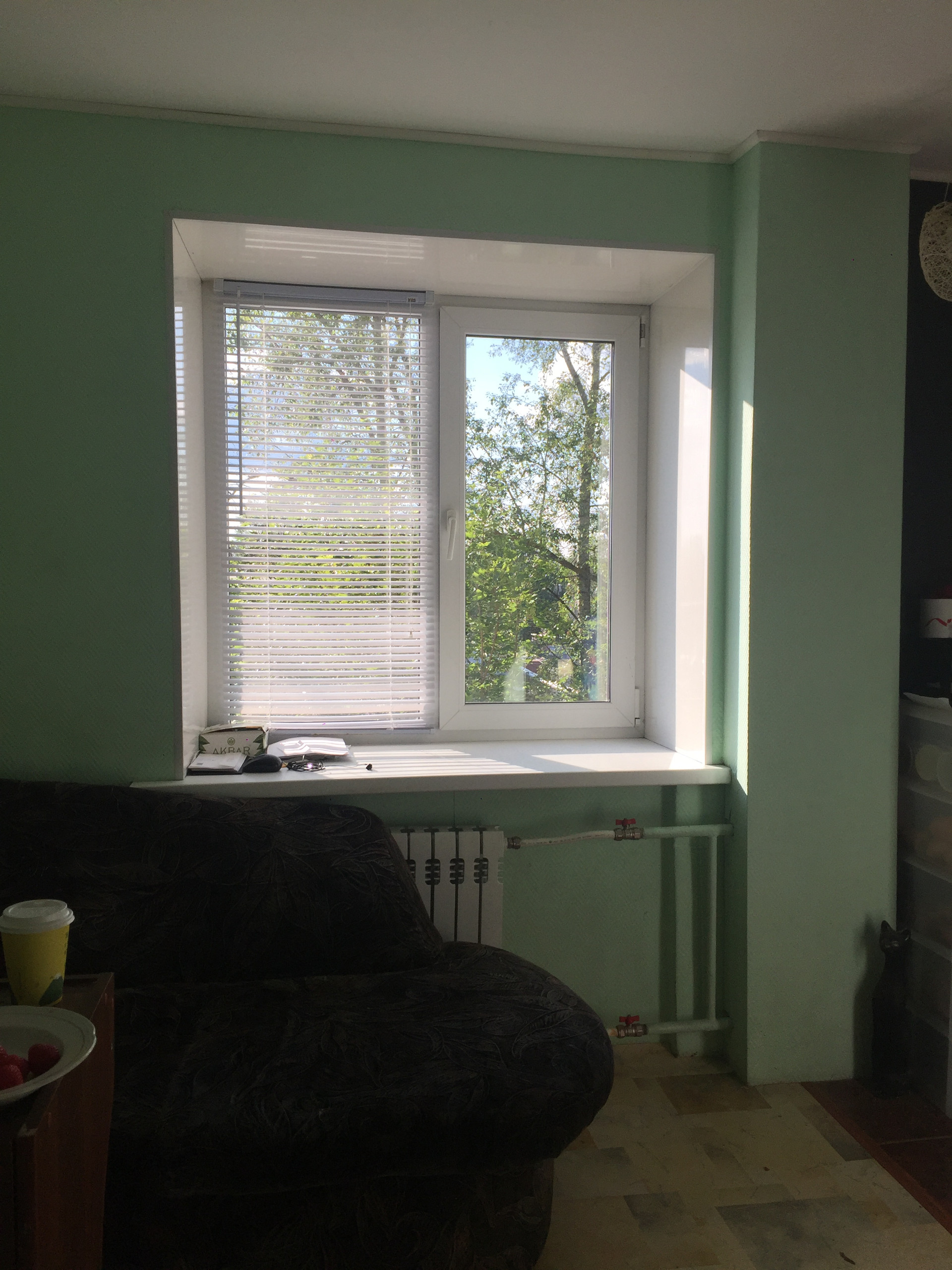 Ремонт косметический. Пластиковые окна, металлическая входная дверь выполненная на заказ, потолки - выровнены, на полу линолеум, ванна - кафель, кухня - на полу плитка.