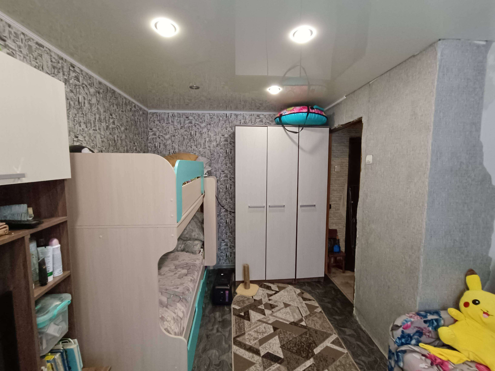 В комнате натяжной потолок.