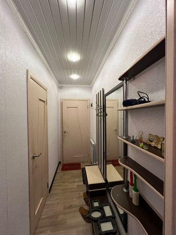 Квартира в хорошем состоянии, установлены пластиковые окна, на полу ламинат, санузел совмещен (отделан пластиком), натяжной потолок.