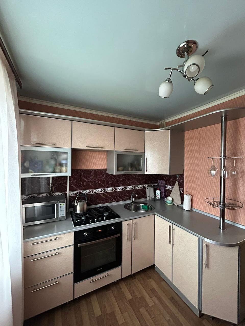 - Кухонный гарнитур со встроенной техникой (духовой шкаф и варочная панель);