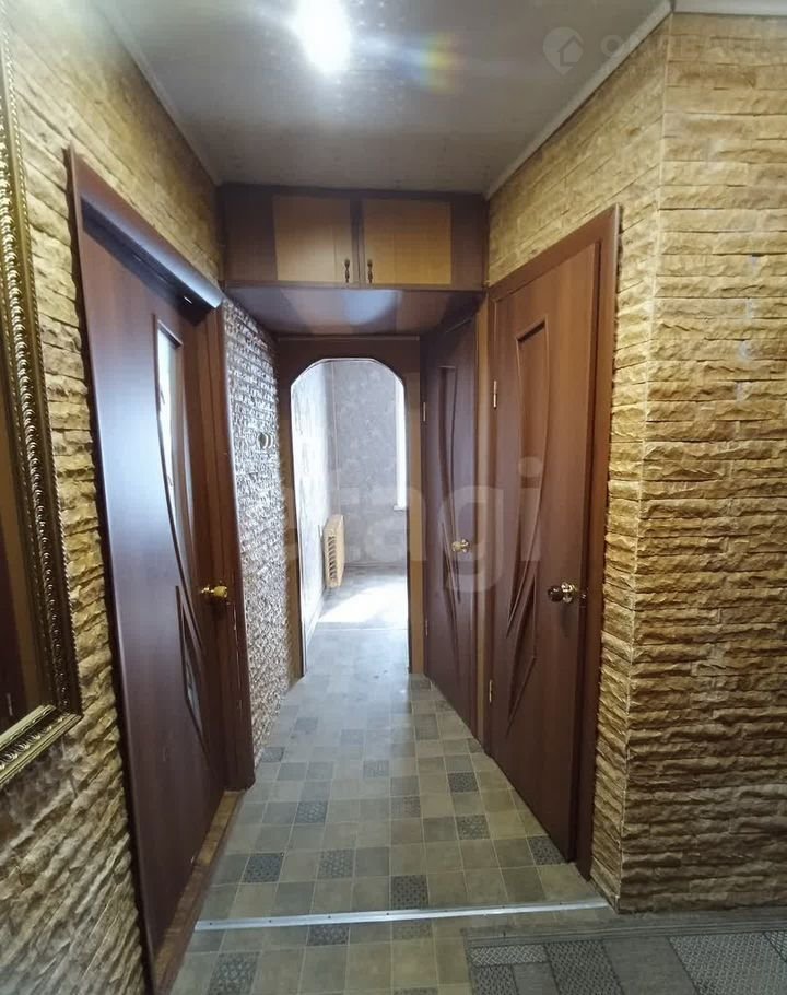 Квартира располагается на первом этаже. Входная дверь - металлическая с надежной системой замков и блокировок от взлома. В прихожей смонтированы вместительный шкаф-купе и антресоли, на стене смонтировано зеркало в рост человека в красивой раме. Стены отделаны под декоративный камень. Потолок закрыт пластиковыми панелями со встроенными светодиодными светильниками. Окна в квартире - пластиковые с удобной регулировкой притока воздуха. Карнизы завешены красивыми шторами и тюлевыми занавесями, спасающими от солнечных лучей и уличного ночного освещения. Балкон остеклен пластиковым профилем, утеплен и отделан современными материалами. На балконе смонтированы ниши для хранения и потолочная система сушки белья. Межкомнатные двери выполнены в одном стиле с оригинальным орнаментом приятного глазу шоколадного цвета.