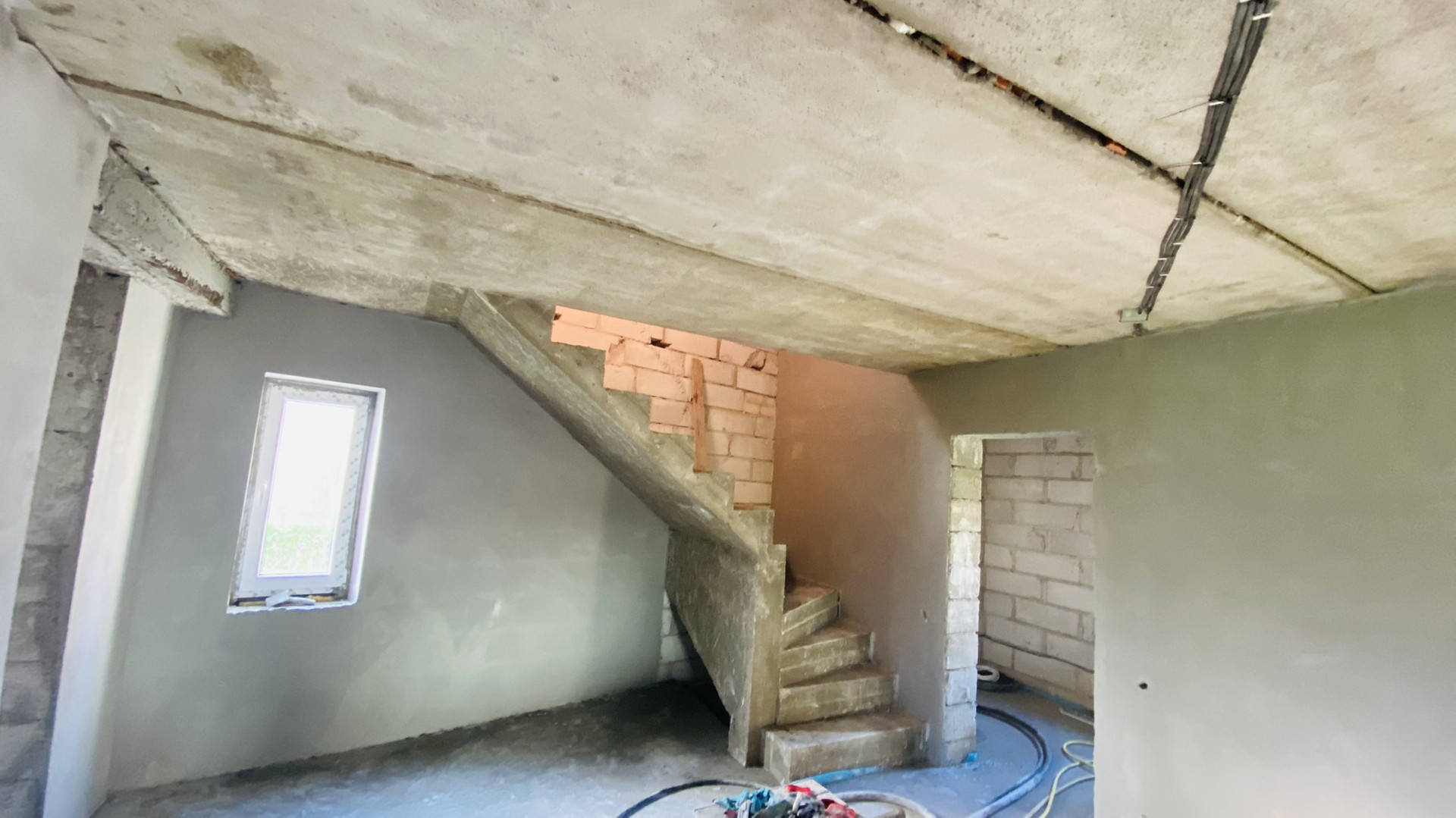 Машинная штукатурка стен, полы залиты под машинку - идеально ровно, готовы к использованию под половое покрытие. Разводка под теплый пол.